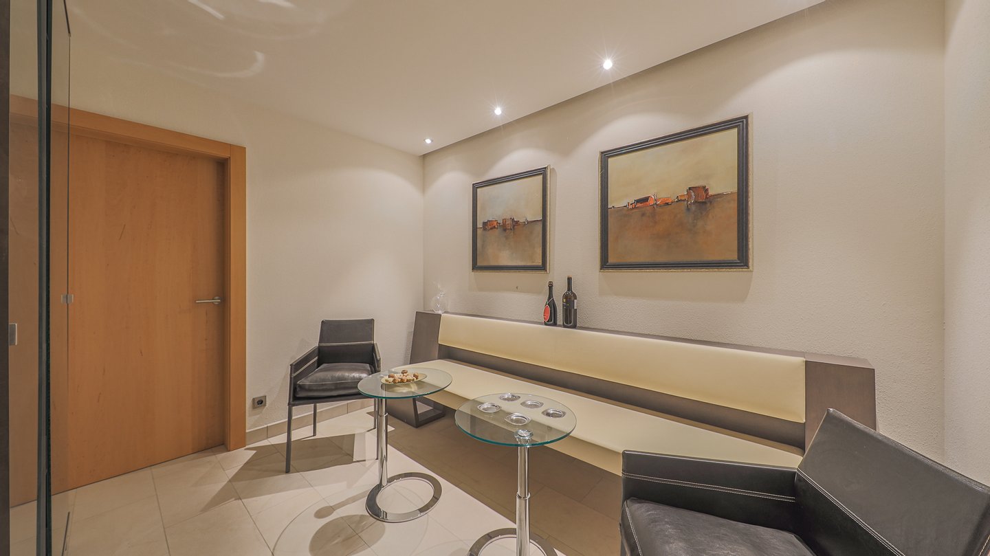 Für das Wohlbefinden der Bewohner sorgt zusätzlich der Spa-Bereich mit Indoorpool, Dampfbad u. Infrarotkabine, des Weiteren im Untergeschoss die Tiroler Stube, ein 40 m² großer Fitnessraum, mehrere Weinräume sowie ein Raum für ein Heimkino.