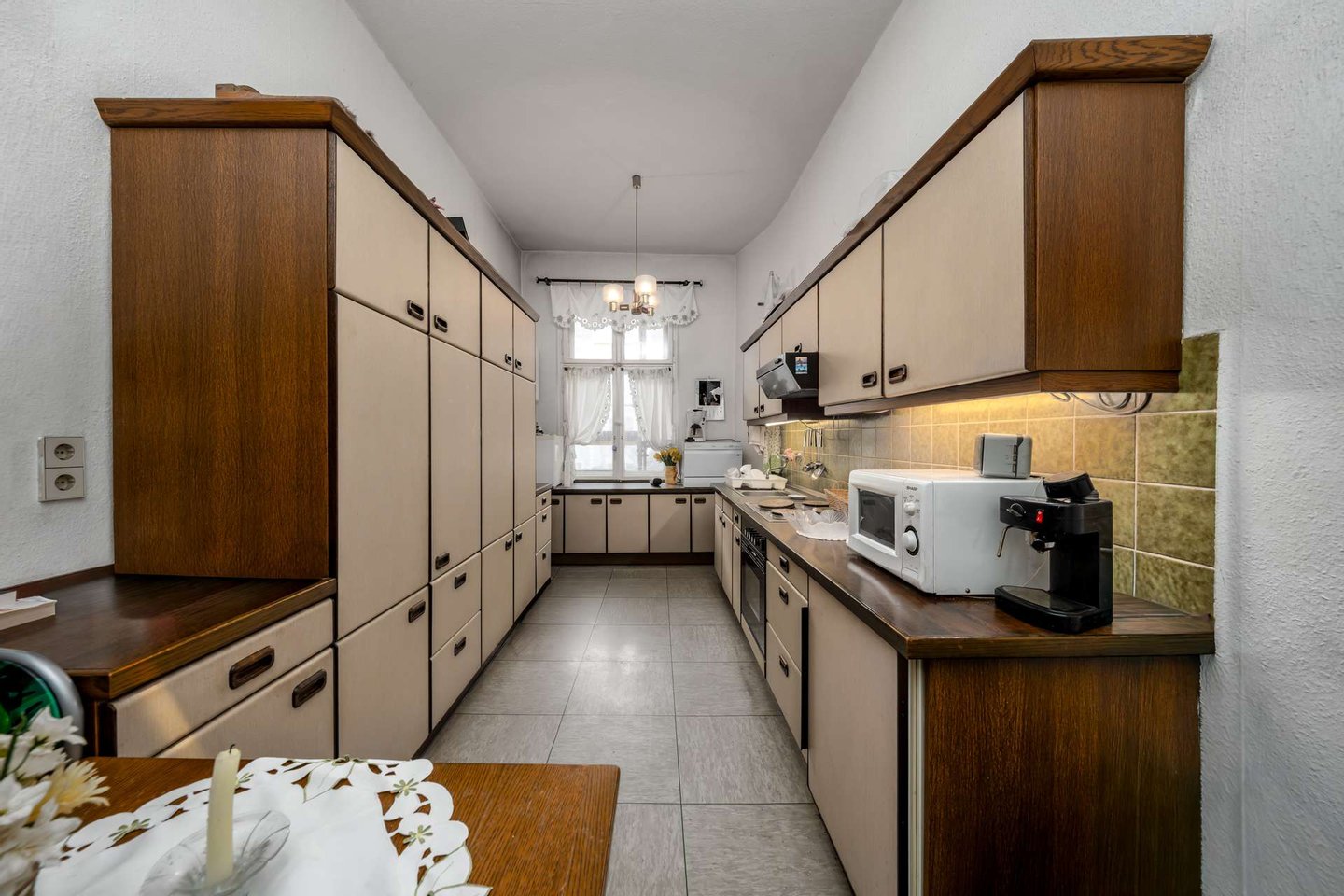 Das Badezimmer ist mit einer Badewanne ausgestattet und verfügt über ein Fenster. Die Küche bietet ausreichend Platz und kann auf Wunsch zu einer Wohnküche umgestaltet werden, was zusätzlichen Gestaltungsspielraum für individuelle Wohnkonzepte eröffnet.