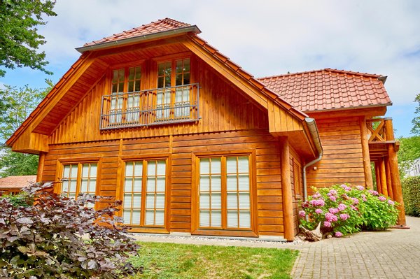 Diese beiden Blockbohlenhäuser mit je zwei Haushälften und einer Bruttogrundfläche von insgesamt 432 m² vereinen höchste Bauqualität mit der einzigartigen Ausstrahlung von Holz. Die massiven Bohlen mit zusätzlicher Wärmedämmung garantieren nicht nur