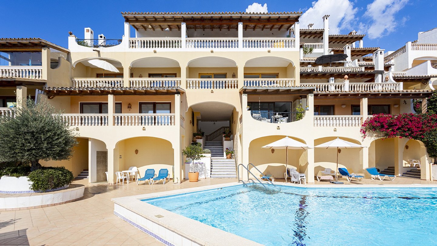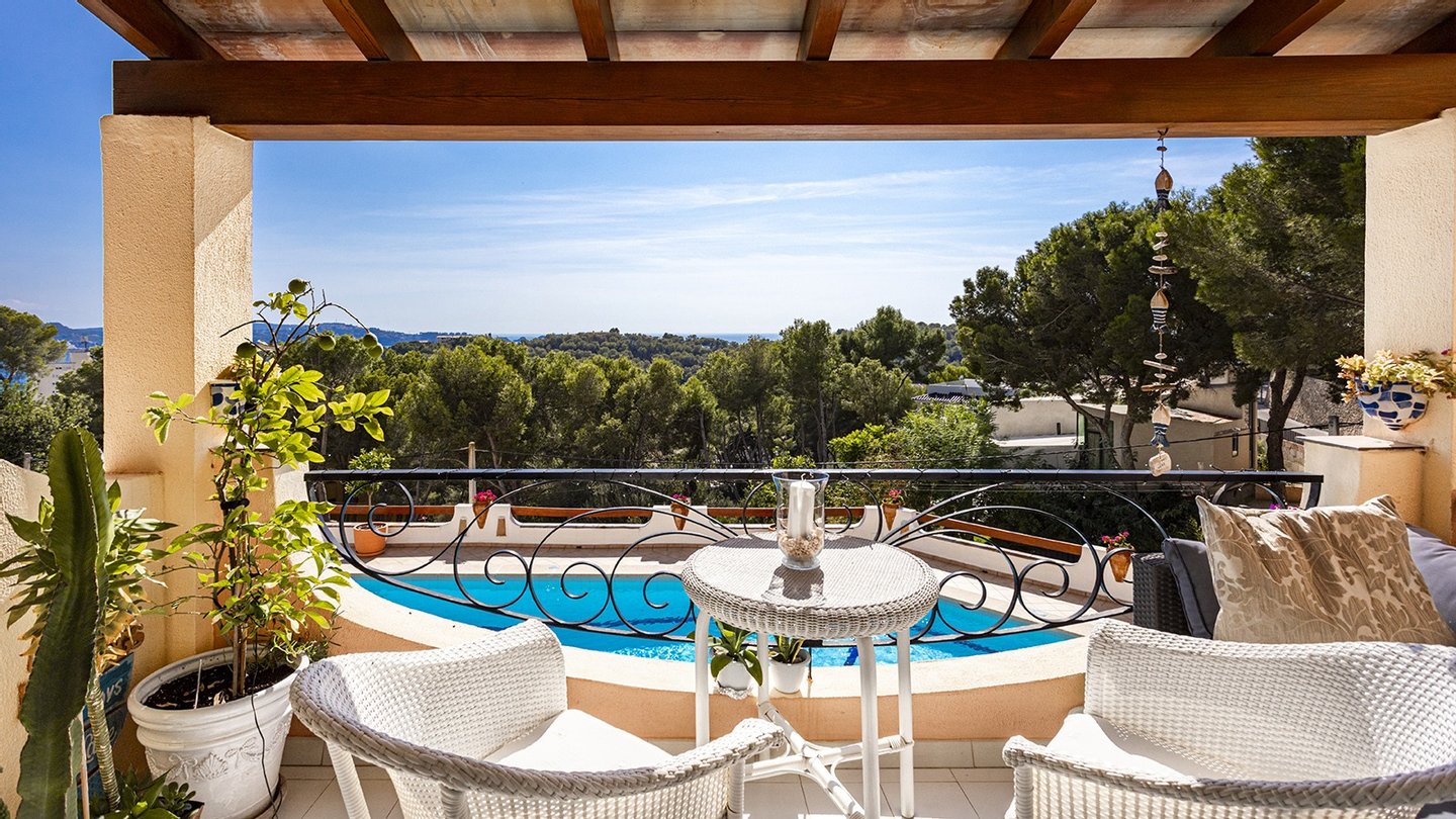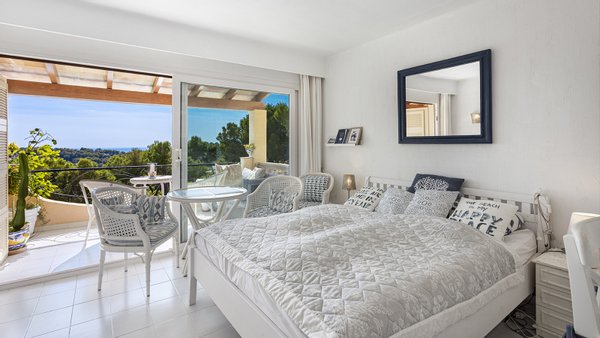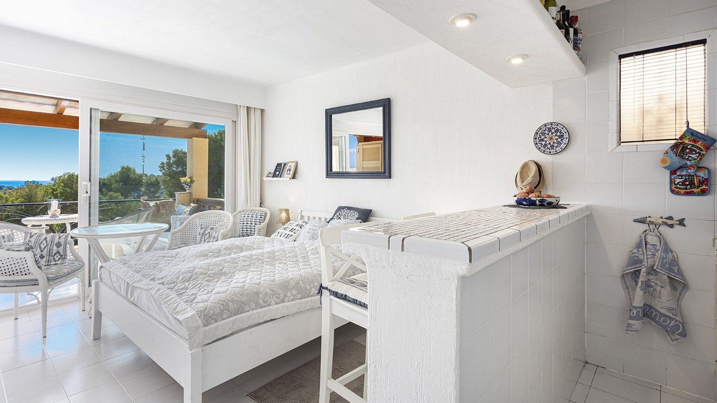 Mallorca Immobilien: Das bezaubernde Studio-Apartment im Otzoup-Stil mit Meerblick befindet sich in fantastischer Lage im beliebten Ort Paguera im Südwesten von Mallorca.