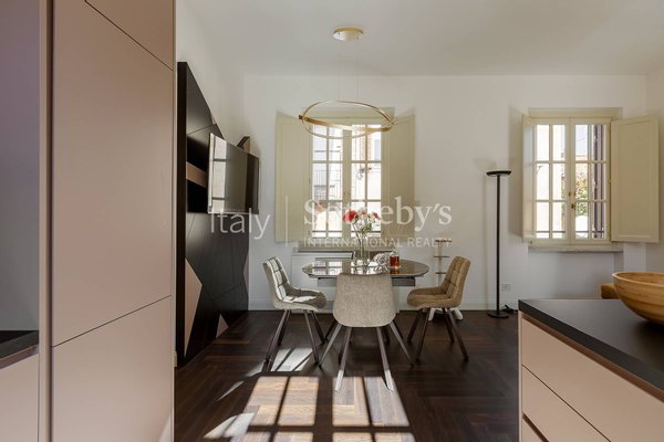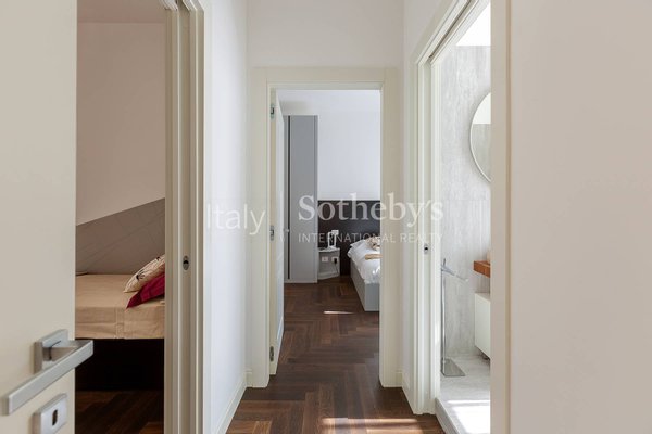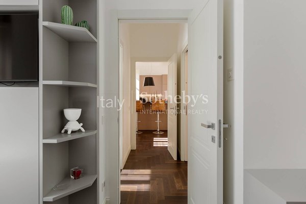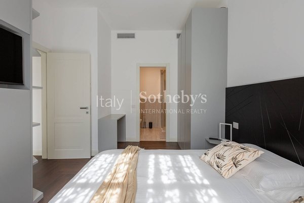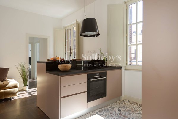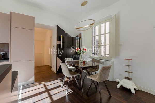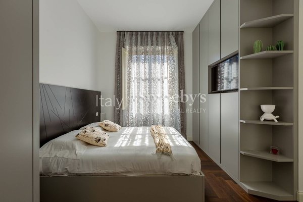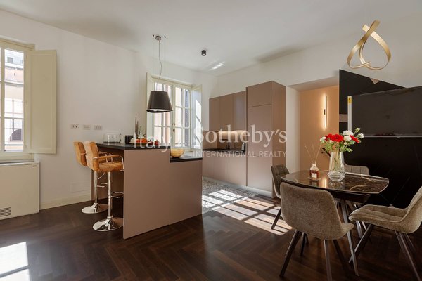 Im historischen Zentrum Roms, zwischen der Piazza di Spagna, dem Trevi-Brunnen und dem Pantheon, befindet sich diese exklusive Zwei-Schlafzimmer-Wohnung im vierten Stock des prestigeträchtigen Palazzo Raggi, eines eleganten Barockgebäudes aus dem 18. Jahrhundert, das dank einer umfassenden Restaurierung unter Aufsicht der Denkmalbehörde wieder in seinen ursprünglichen Glanz versetzt wurde. Das Projekt, umgesetzt von den Architekturbüros Tamburini und dL Engineering, verbindet historische Eleganz mit modernster Architektur- und Technologieausstattung, wie dem spektakulären verglasten Panoramalift, der imposanten originalen monumentalen Treppe und der eleganten Lobby, aufgewertet durch hochwertige Materialien in zeitgenössischer Interpretation.