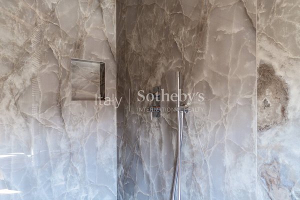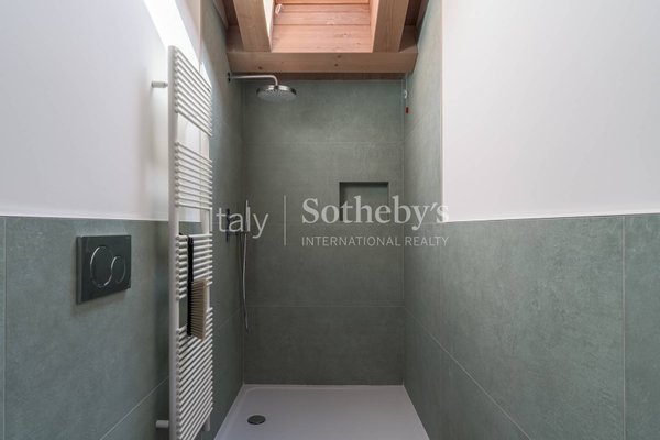 Spread over two levels, the apartment opens onto a bright living area, made even more welcoming by a skylight that fills the space with natural light. The kitchen-truly one of a kind-has been created within the building's former frescoed chapel, an extraordinary feature that marries elegance with historical memory.