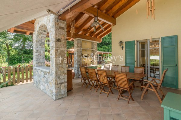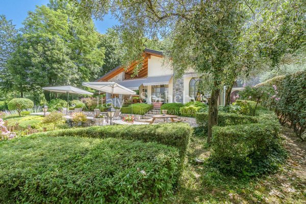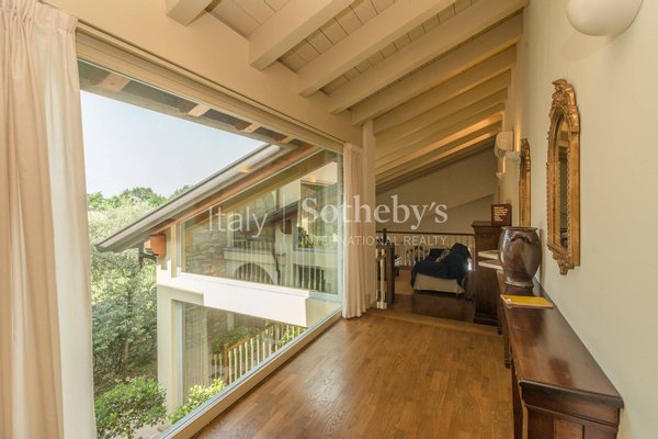 Die Villa, vollständig renoviert, vereint den Charme eines Stils, der englisches und toskanisches Wohnen kombiniert. Der Zugang zur Immobilie erfolgt durch ein schmiedeeisernes Tor, das auf eine Auffahrt führt, von der aus der perfekt gepflegte Garten der Villa bewundert werden kann und die überdachten Parkplätze neben dem Haupteingang erreicht werden.