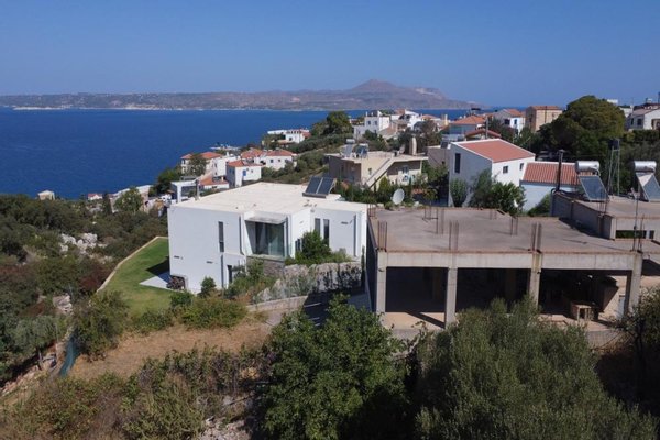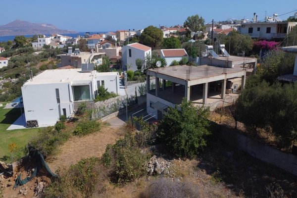 Mit zwei mietfertigen Wohnungen und einem unfertigen Obergeschoss bietet das Anwesen erhebliches Entwicklungspotenzial in einer sehr begehrten und malerischen Gegend Kretas.