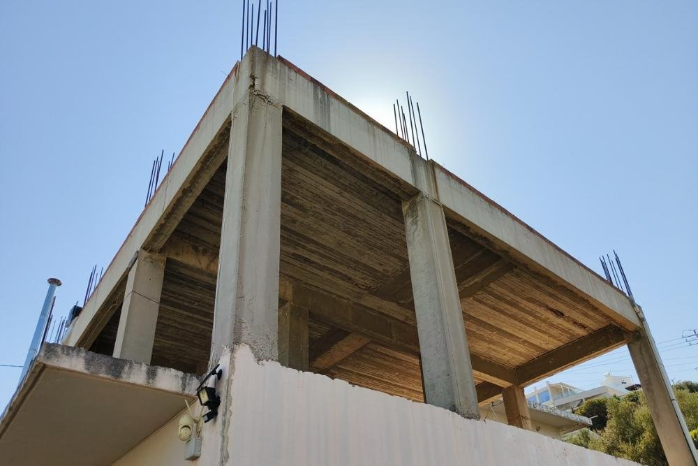 Das unvollendete, 158 m² große Obergeschoss bietet eine seltene Erweiterungsmöglichkeit. Es könnte zu einem Hauptwohnsitz, zusätzlichen Mietwohnungen oder einer Gästeunterkunft ausgebaut werden, die alle einen Panoramablick auf das Meer und die Berge bieten.