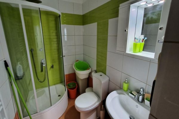 Die erste Wohnung ist 73 m² groß und verfügt über zwei helle Schlafzimmer mit Einbauschränken, zwei Badezimmer, eine voll ausgestattete Küche sowie einen offenen Wohn- und Essbereich. Die zweite Wohnung, 46 m², bietet ein Schlafzimmer mit Einbauschränken, ein Badezimmer sowie eine offene Küche mit Wohnbereich. Beide Wohnungen haben Zugang zu einer überdachten Veranda, die zum Entspannen im Freien einlädt. Der 50 m² große Abstellraum bietet praktischen Platz für Haushalts- oder Hauswirtschaftsräume.