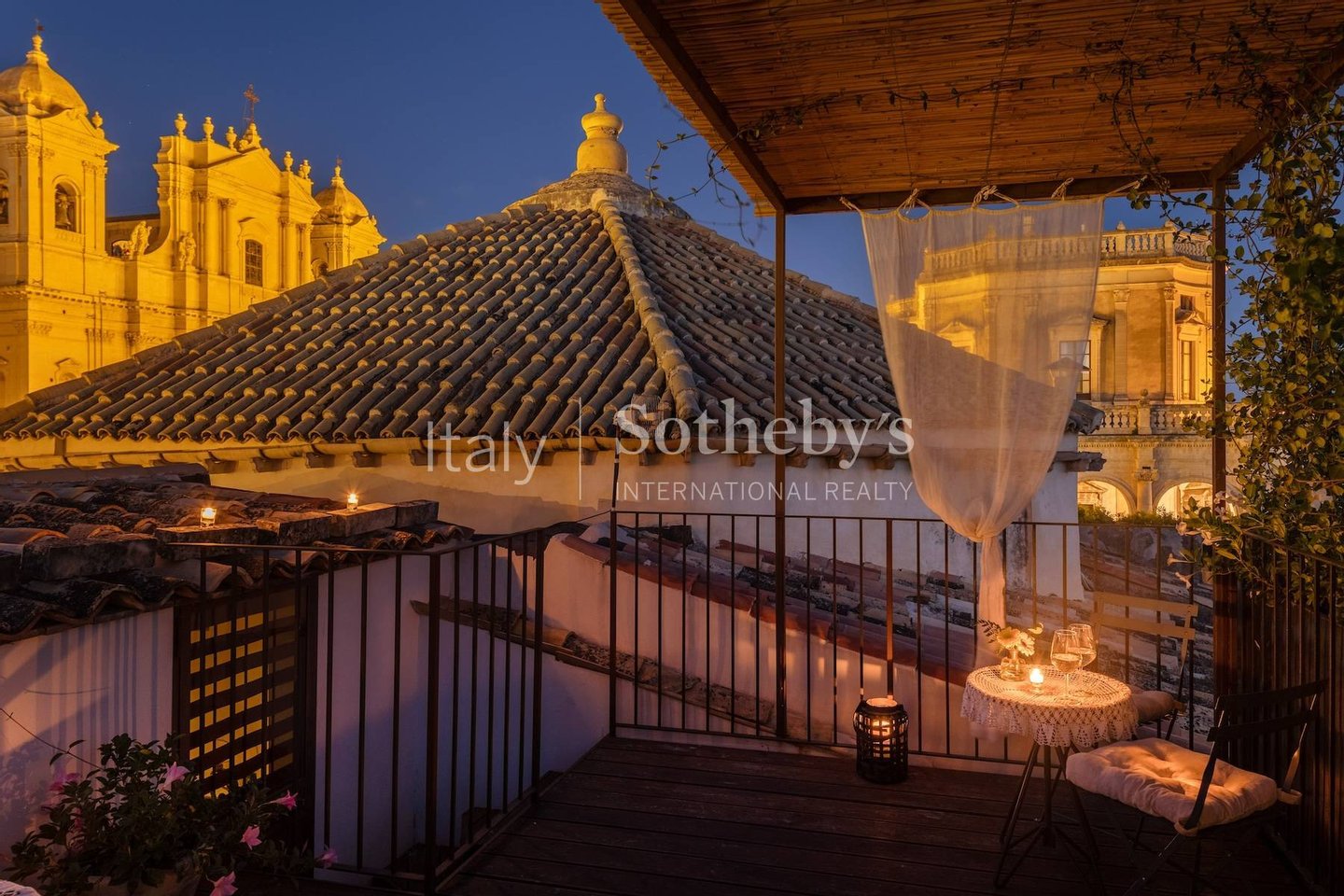 Diese elegante Immobilie befindet sich im Herzen der Altstadt von Noto, in einem prestigeträchtigen Palazzo aus dem Jahr 1746, und bietet einen atemberaubenden Panoramablick auf die Basilika San Nicolò und die Via Nicolaci. Von ihren Balkonen aus lässt si