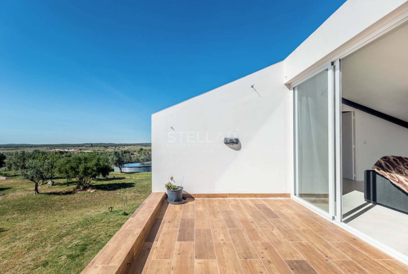 Die umliegende Landschaft ist einzigartig: weite goldene Ebenen, Weinberge und Olivenhaine, die sich bis zum majestätischen Alqueva-See erstrecken, dem größten künstlichen See Europas, der Möglichkeiten für Freizeit, Bootfahren, Angeln und Naturbeobachtung bietet. Die Nähe zum historischen Dorf Monsaraz verleiht einen besonderen Charme mit mittelalterlichen Straßen, einer imposanten Burg und Panoramablicken über den Alentejo und den See, was jeden Besuch zu einem unvergesslichen kulturellen und visuellen Erlebnis macht.
