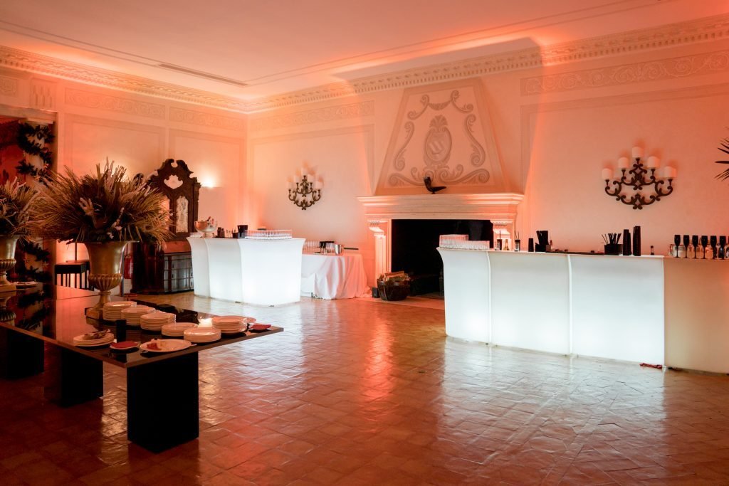 Mit der Kapazität von Tischen für über 600 Gäste bietet dieses einzigartige Ambiente freiliegende Eichenbalken und große Fenster mit Blick auf die Gärten sowie Details der alten Getreidesilos und bietet ein unvergessliches Erlebnis. Der imposante 7 Hektar umfassende, jahrhundertealte Park beherbergt einen Hubschrauberlandeplatz, einen eleganten italienischen Garten mit zwei historischen Brunnen und einen Innenhof, der von der Außenterrasse überblickt wird, der ideal für Abendessen und Empfänge im Freien ist. Der Innenhof verfügt über einen gemütlichen Garten mit dem antiken Eisbrunnen aus dem 18. Jahrhundert in der Mitte, begleitet von der eindrucksvollen Präsenz der Adelskapelle. Von diesem Ort aus kann man das Panorama der Lucretili-Berge und des Tivoli bewundern sowie den Nahblick auf den 9700 m² großen Olivenhain und das antike Bauernhaus genießen. Das Grundstück verfügt über einen großen Parkplatz, der Platz für über 400 Autos bietet. Die Kombination aus Luxus, Geschichte und Lage macht diese Immobilie perfekt für alle, die ein prestigeträchtiges Haus oder eine einzigartige Geschäftsmöglichkeit erwerben möchten.