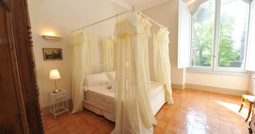 Die Architektur aus dem 18. Jahrhundert zeichnet sich durch ihre Majestät und ihren Respekt vor den ursprünglichen Formen aus, was die historische Bedeutung des Ortes unterstreicht. Im 20. Jahrhundert wurde es als Film- und Fernsehdrehort genutzt und beherbergte berühmte Produktionen wie den Film "Pinocchio" von Luigi Comencini sowie erfolgreiche Serien wie "Don Matteo" und "Ultimo". Die Villa aus dem 18. Jahrhundert erstreckt sich über drei Ebenen mit Innenräumen, die durch zeitgenössische Einrichtung, Wandteppiche und feine Holzböden bereichert sind, die eine Atmosphäre von unbestreitbarem Charme und Raffinesse schaffen.