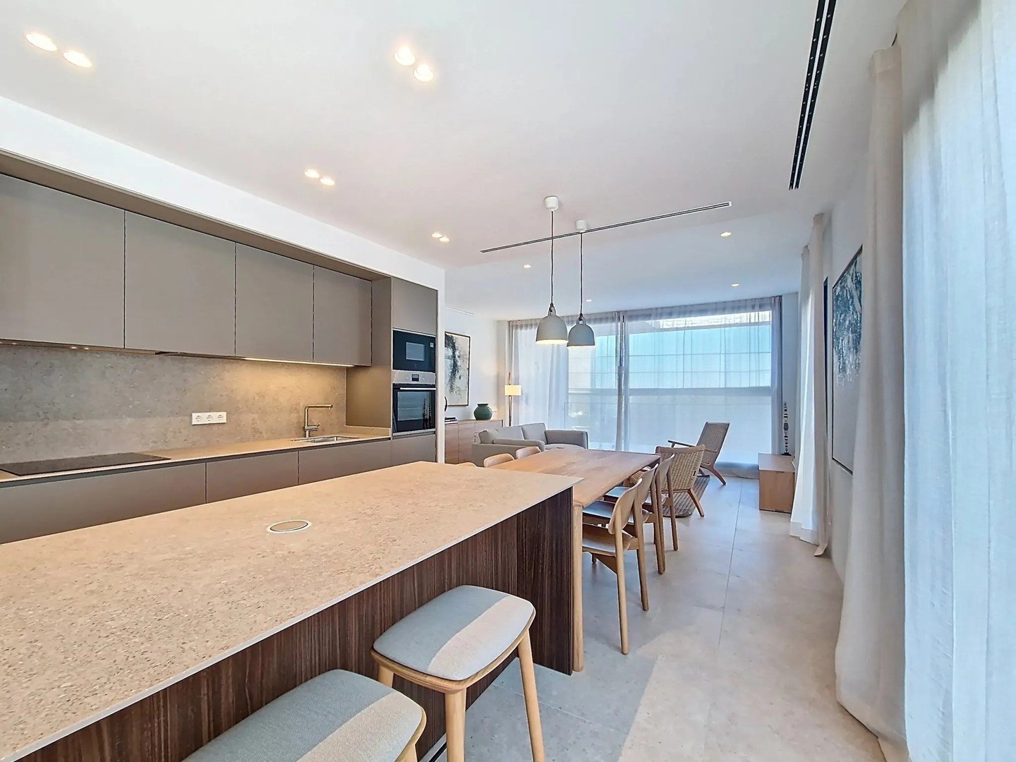 Both the exterior and interior designs stand out for their quality, sustainability, and security in every detail. Natural light and high-end materials create a warm and elegant ambiance throughout.