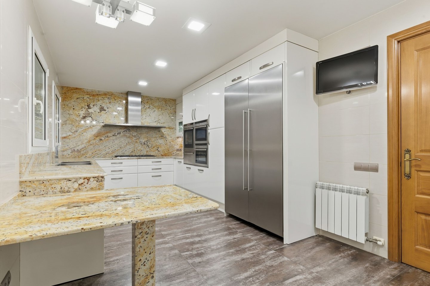Die Immobilie verfügt über zwei unabhängige Eingänge: einen Haupteingang und einen Dienstboteneingang mit einer privaten Treppe. Diese Konfiguration bietet eine große Vielseitigkeit und ermöglicht: