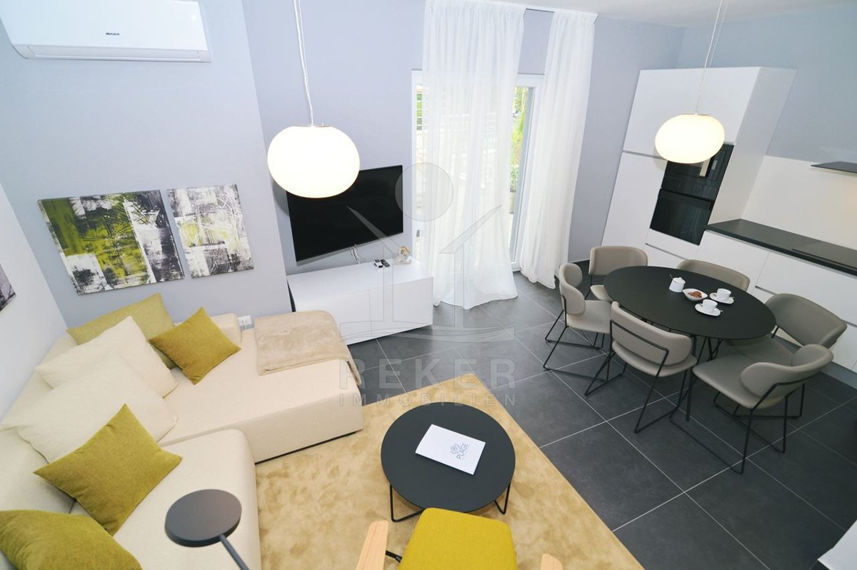 Erleben Sie Raum, den andere nur erträumen: 113 m² purer Komfort, zwei Bäder, Terrasse mit 30 m² Sonne und Adria-Blick. Absolute Ruhe. Absolute Nähe zum Meer. Nur sechs Einheiten. Wer hier wohnt, wohnt außergewöhnlich.