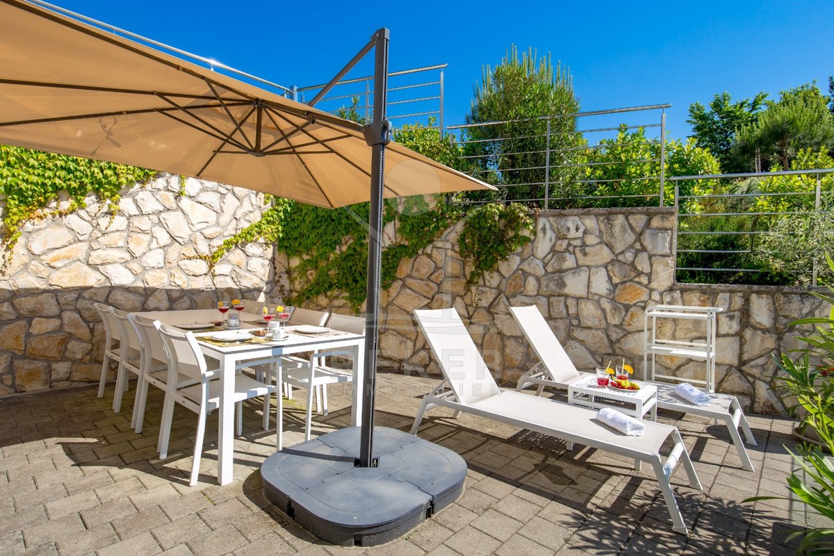 Nur ein paar Kilometer von Opatija entfernt liegt diese moderne Villa … direkt an der Küste, nur 50 Meter vom Meer. Dank ihrer Lage am Hang haben Sie freien Blick auf die Adria, ganz ohne störende Bebauung davor. Und weil rundherum dichter Baumbestand ist und der nächste Nachbar etwa 100 Meter entfernt wohnt, bleibt es ruhig. Richtig ruhig. Klingt das nach Rückzug? Ist es auch.