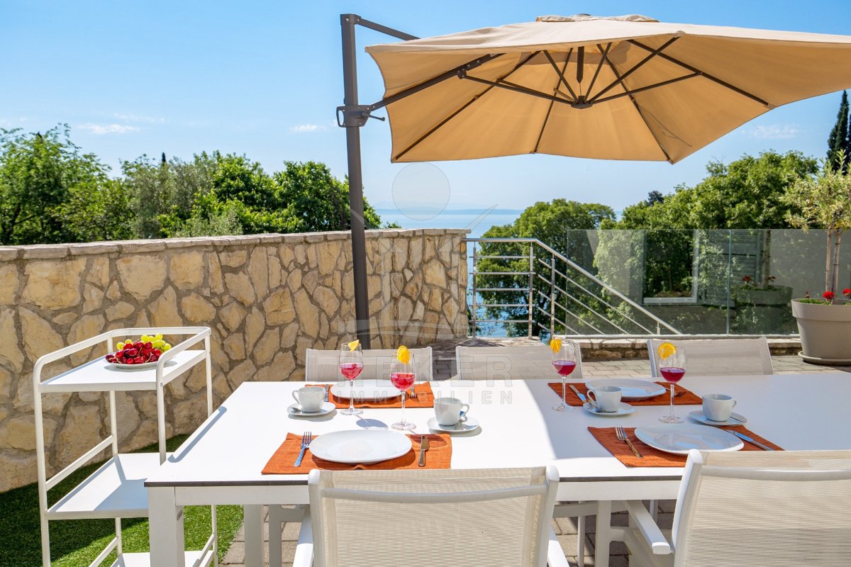 Nur ein paar Kilometer von Opatija entfernt liegt diese moderne Villa … direkt an der Küste, nur 50 Meter vom Meer. Dank ihrer Lage am Hang haben Sie freien Blick auf die Adria, ganz ohne störende Bebauung davor. Und weil rundherum dichter