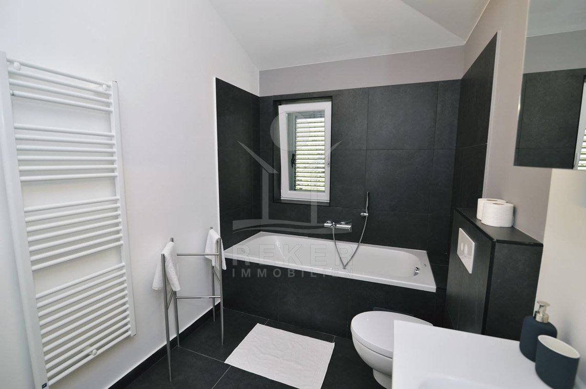 Nur ein paar Kilometer von Opatija entfernt liegt diese moderne Villa … direkt an der Küste, nur 50 Meter vom Meer. Dank ihrer Lage am Hang haben Sie freien Blick auf die Adria, ganz ohne störende Bebauung davor. Und weil rundherum dichter Baumbestand ist und der nächste Nachbar etwa 100 Meter entfernt wohnt, bleibt es ruhig. Richtig ruhig. Klingt das nach Rückzug? Ist es auch.