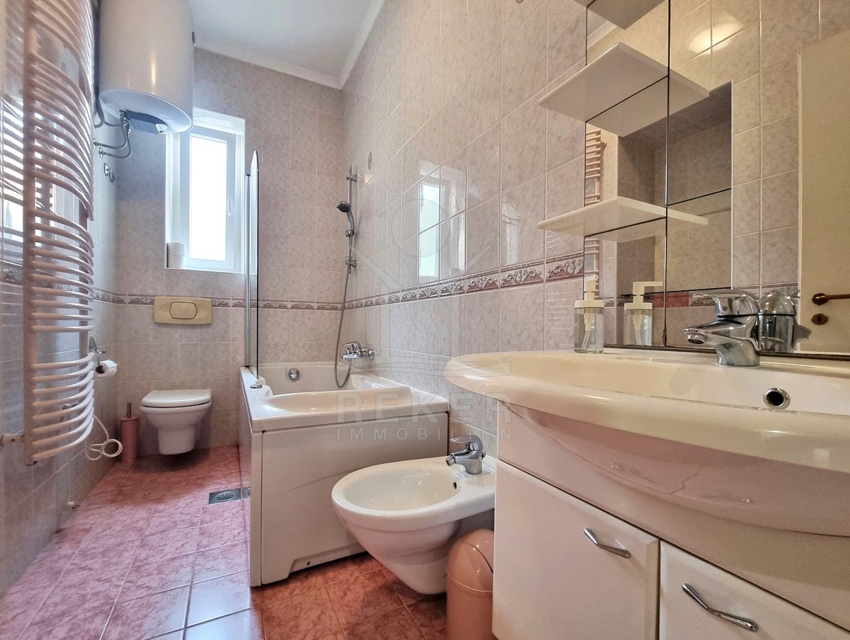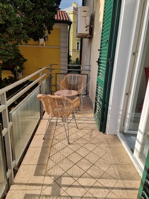 Diese Wohnung erzählt Geschichte und verbindet sie mit modernem Wohnkomfort. Sie befindet sich im ersten Stock einer österreichisch-ungarischen Villa, nur rund 200 Meter von der Hauptpromenade und dem Meer entfernt. Geschäfte, Schulen und öffentliche Verkehrsmittel sind bequem zu Fuß erreichbar. Das Auto darf also öfter stehenbleiben.