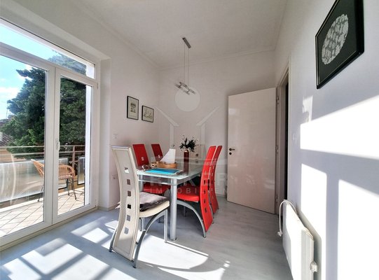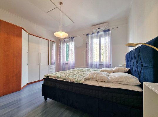 Diese Wohnung erzählt Geschichte und verbindet sie mit modernem Wohnkomfort. Sie befindet sich im ersten Stock einer österreichisch-ungarischen Villa, nur rund 200 Meter von der Hauptpromenade und dem Meer entfernt. Geschäfte, Schulen und öffentliche