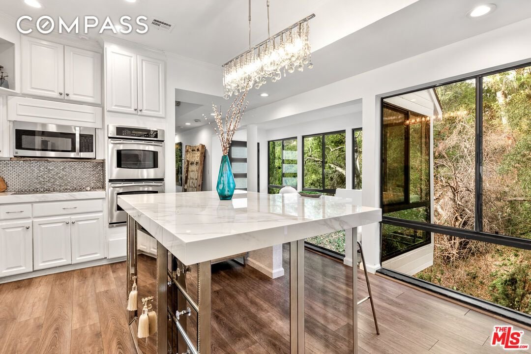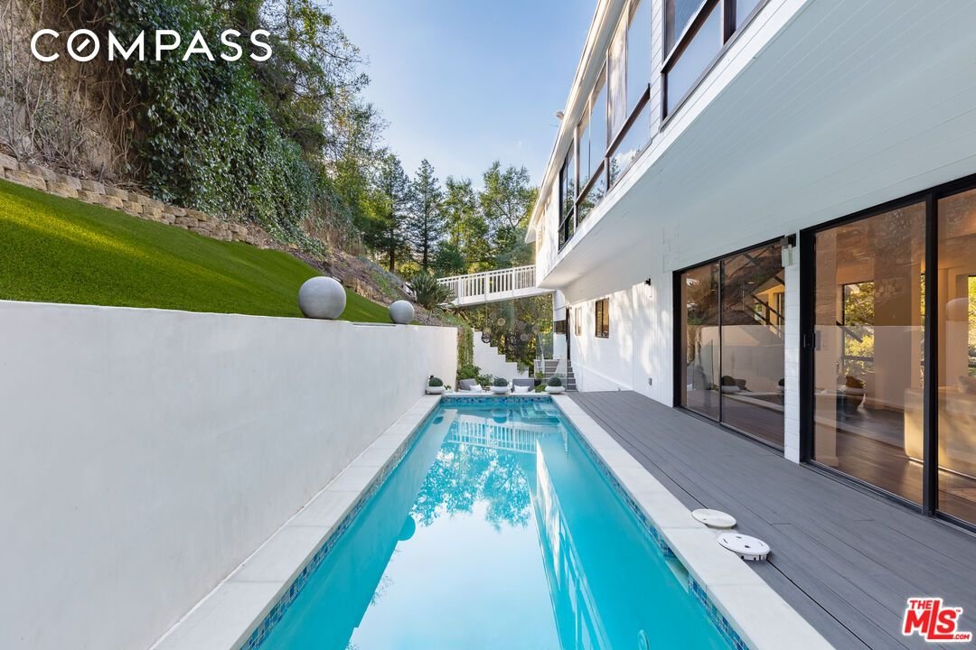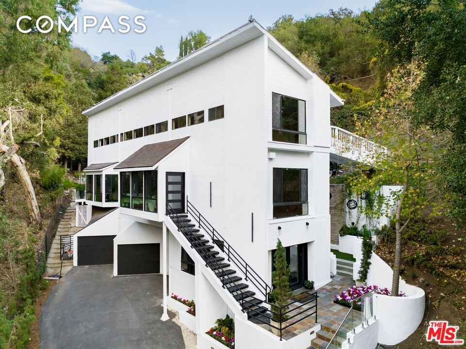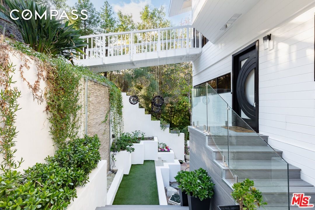 Erleben Sie ultimative Privatsphäre in diesem waldigen Rückzugsort, der abseits von allem versteckt ist: Versteckt hinter Toren und auf einer privaten, etwa 200 Fuß langen Auffahrt ruht dieses charmante Refugium im Benedict Canyon, das inmitten alter Bäume und üppiger Vegetation liegt. Leben Sie einen Lebensstil in göttlicher Harmonie mit der Natur und Blick auf grünes Grün von jedem Zimmer aus. Im Inneren führen breite Dielenböden von einem Raum zum nächsten, während große Panoramafenster und Glaswände natürliches Licht hereinlassen. Eine Frühstücksecke im Gewächshaus grenzt an die umgebaute Küche mit ihrer schönen Mittelinsel, dem schillernden Spritzschutz, Edelstahlgeräten, strahlend weißen Schränken und trendigen Einrichtungsgegenständen. Das formelle Wohnzimmer wird von einem dekorativen Kamin umgeben und bietet einen Rundumblick auf das Gelände und die umliegende Hügelumgebung. Die Hauptsuite ist ein ruhiger Zufluchtsort und verfügt über ein Badezimmer mit zwei Waschbecken und separater Dusche und Whirlpool sowie einen begehbaren Kleiderschrank. Andere Schlafzimmer bieten ein einzigartiges, komfortables Baumhausgefühl, das an Sommercamps und Familienurlaube erinnert. Es gibt auch ein renoviertes Gästehaus mit Küchenzeile, Seitenterrasse und Badezimmer. Zu den zahlreichen Annehmlichkeiten im Freien gehören grasbewachsene Rasenflächen, sanfte Hügel, gewundene Kopfsteinpflasterwege, ein eingebauter Grill, ein Pool, ein Spa, Lounge-Decks, Wasserspiele und viele Plätze zum Entspannen und Essen im Freien. Das Hotel liegt innerhalb der Besuchsgrenzen der preisgekrönten Warner Avenue Elementary School. Willkommen zu Hause! Auch zur Vermietung verfügbar.