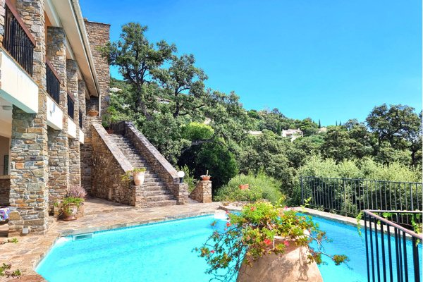 I was born on the heights of Cavalière, shaped by the architect Jean Reitz, designed for those who love light, calm... and the breathtaking panoramas. I stand in the heart of a preserved estate, surrounded by 1,750 m2 of manicured gardens. Every morning, my walls are illuminated by the reflection of the Mediterranean. Every night, I fall asleep with the murmur of the Golden Islands. Come in... My double living room welcomes you with its generous volumes, its sculptural fireplace and my bay windows that embrace the sea. My equipped kitchen, my pantry, my mezzanine and my four bedrooms have been designed so that your daily life is fluid, elegant and comfortable. And then there's my secret: an interior patio with a fountain. A corner of poetry that soothes everything, even the most intense days. Outside, my terraces follow one another like invitations to slow down. My 45 m2 swimming pool, installed like the bow of a boat, seems to slide towards the bay of Lavandou. Here, you live outside as much as inside. Here, everything breathes. My concrete structure, my convertible attic, my double garage, the air conditioning and my central heating make me as solid as it is attractive. And the best part? You are only a few minutes walk from the beaches, restaurants, the sweet life of Cavalière. I am a rare address, a Mediterranean refuge, a place where you reconnect with the essential. And maybe... your next story. Georgelin MALECKI - Real Estate Consultant - RSAC 981 018 971