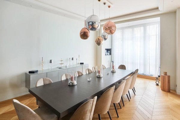 In einem schönen Haussmann-Gebäude, im 6. und 7. (obersten) Stockwerk mit Aufzug, eine prächtige Maisonette von 332 m2, umgeben von Balkonen, mit freiem Blick, bestehend aus: