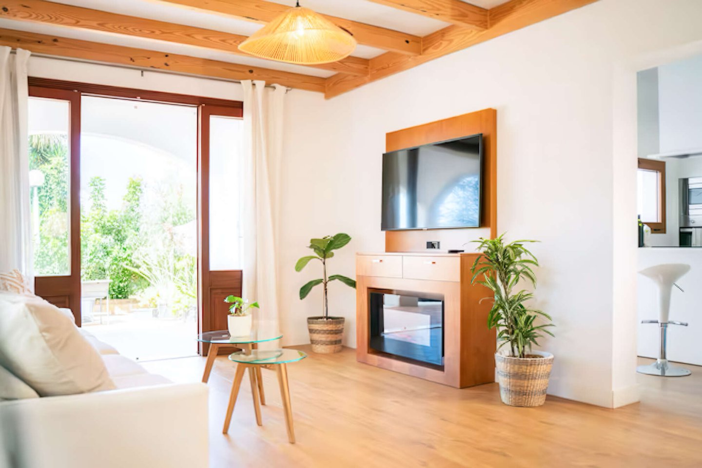 Trotz der abgeschiedenen Lage bist du in nur fünf Autominuten am mehrfach ausgezeichneten Strand Playa de Muro. Das charmante Dorf Santa Margalida ist bequem zu Fuß erreichbar und bietet Einkaufsmöglichkeiten, Cafés und authentisches Inselleben. Die Finca Sa Capella ist voll klimatisiert und vereint Natur, Komfort und mediterranen Stil – ein Ort zum Ankommen und Wohlfühlen.