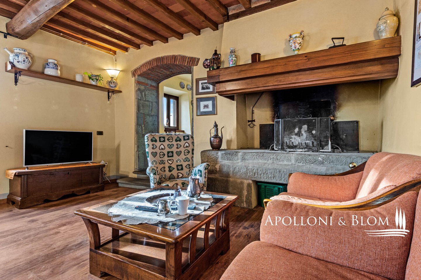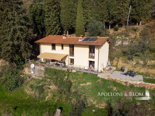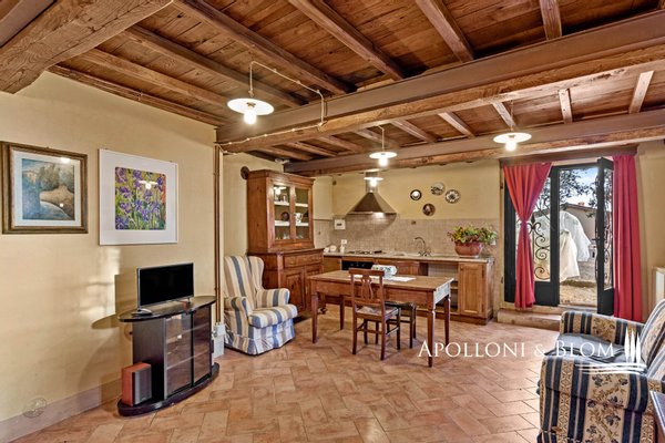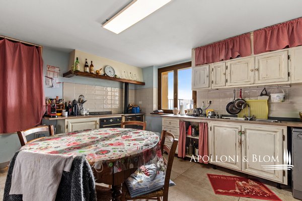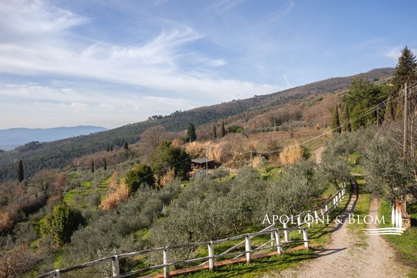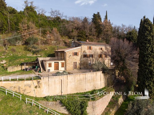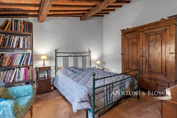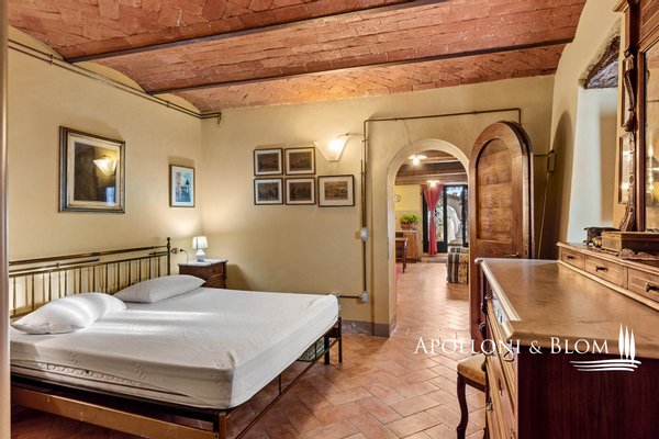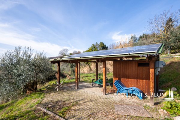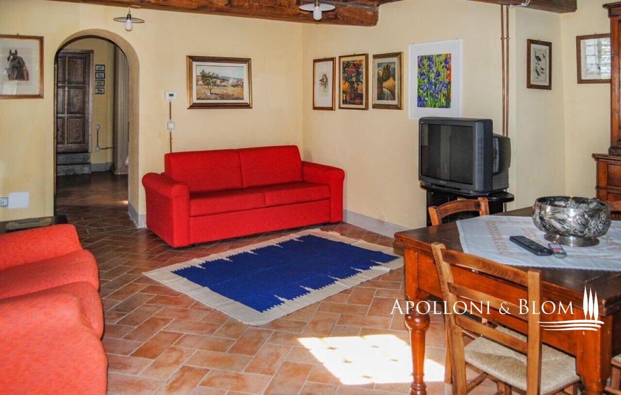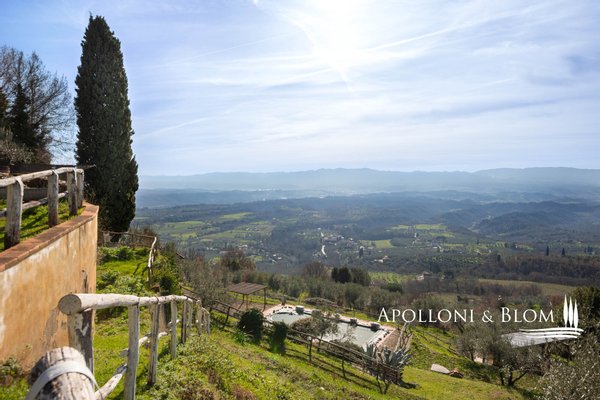 Bauernhaus aus dem 15. Jahrhundert, Nebengebäude, separate Villa, Panoramaschwimmbad, Sonnenkollektoren, 3,9 ha Land, zu verkaufen in Loro Ciuffenna, Arezzo. In Panoramalage mit atemberaubendem Blick auf das Valdarno und die Chianti-Berge, 350 Meter über dem Meeresspiegel, ist La Guardiaccia ein Refugium für alle, die sich gerne in der Natur inmitten jahrhundertealter Wälder zurückziehen und in die Ferne blicken. Das Haupthaus stammt aus dem Jahr 1400 und hat seine mittelalterlichen Natursteinfassaden und Backsteinbögen bewahrt. Es erstreckt sich über drei Etagen mit großen, belvedereartigen Terrassen, die mit Außenwohnbereichen und einem Jacuzzi ausgestattet sind. Kürzlich wurde es zu einem eleganten Landhaus mit vier Zimmern und einem Spa-Anbau mit Fitnessraum und Sauna renoviert. Alle Innenräume verfügen über eindrucksvolle Holzdecken, in einigen Zimmern sind die ursprünglichen Terrakottaböden und charmanten Steinkamine erhalten geblieben, während die neue Ausstattung mit Holzfenstern und -türen mit Doppelverglasung, Parkettböden, Bädern mit Keramikfliesen und einer neuen Photovoltaikanlage für die Strom- und Warmwasserversorgung im Sommer überzeugt. Die zentrale Etage des Bauernhauses ist der Mittelpunkt des Wohnbereichs mit einem Wohnzimmer mit Kamin, einem Esszimmer, einer Küche und Terrassen auf beiden Seiten. Das Nebengebäude mit Spa befindet sich im Hof vor dem Bauernhaus zusammen mit dem Ofen mit Grill und Veranda. Wenige Meter entfernt führt ein Gartenweg zum Swimmingpool, der von einer mit Stein und Terrakotta gepflasterten Sonnenterrasse mit Pavillon umgeben ist, und am anderen Ende zu einer ehemaligen mittelalterlichen Scheune, die restauriert und in ein romantisches Gästehaus umgewandelt wurde. Eine Zypressenallee öffnet den Zugang zu einer zweistöckigen Villa von 136 Quadratmetern, die perfekt in die Landschaft eingebettet ist. Sie bietet große Fenster und natürliches Licht in jedem Raum, Parkettboden, Sonnenkollektoren und allen modernen Komfort. La Guardiaccia ist außer von 1.730 qm Garten auch von 3,9 Hektar Land mit Olivenhainen, Wäldern und 3 Pferdeboxen umgeben. Im Herzen der toskanischen Landschaft, zwischen Florenz und Arezzo, die beide in einer halben Autostunde zu erreichen sind, 15 km von der A1 und nur zwanzig Minuten von Prada und The Mall Luxury Outlet entfernt. Loro Ciuffenna, nur 2,5 km entfernt, ist ein typisches mittelalterliches Dorf mit einem historischen Zentrum, das für die Erhaltung einer tausend Jahre alten Mühle berühmt ist, die noch in Betrieb ist. Es bietet alle Dienstleistungen, Bars, Restaurants, Geschäfte, Postamt.