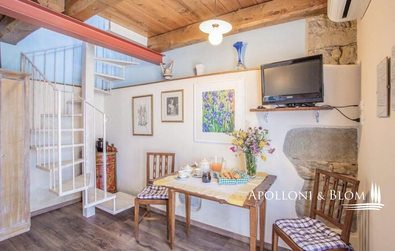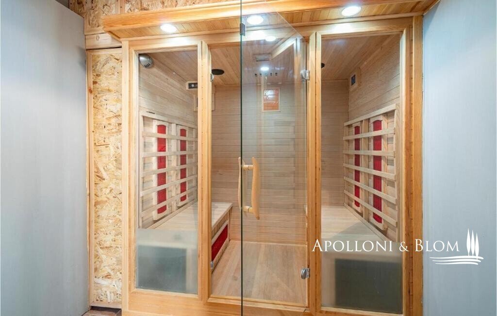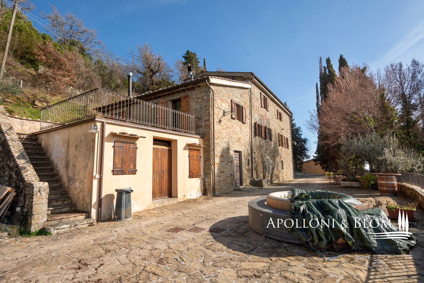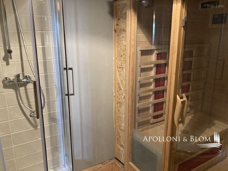 Typ: 1400 Stein Bauernhaus auf drei Ebenen von ca. 400 qm, mit Gäste-Anhang, Terrassen mit Jacuzzi und Schwimmbad, Anhang mit Spa, Holzofen, und Land mit Olivenhain und Wald; separate Villa auf zwei Ebenen von ca. 136 qm