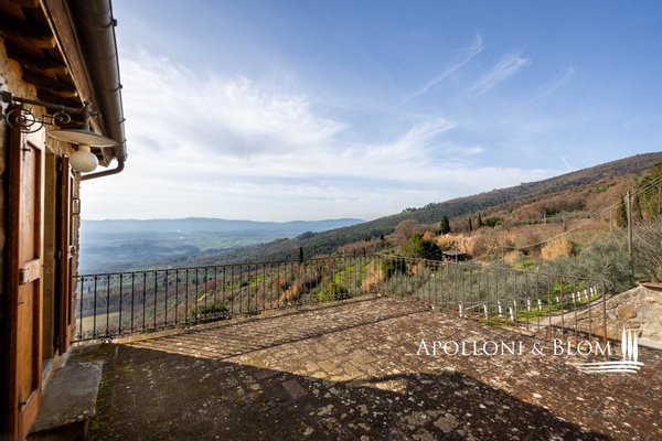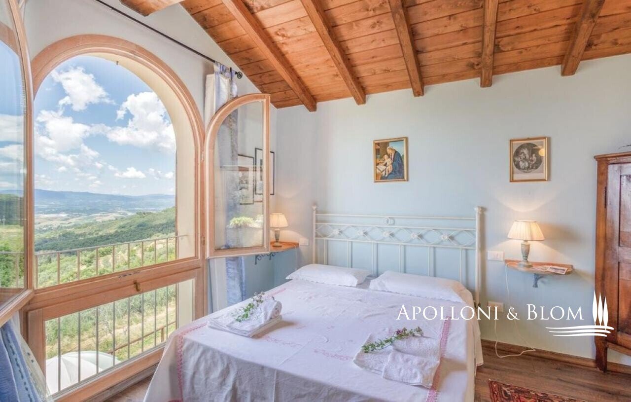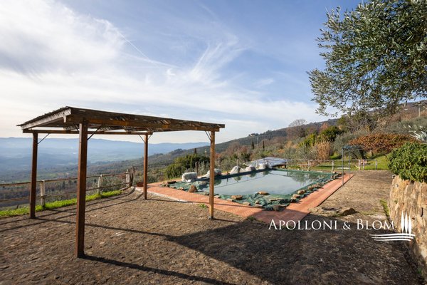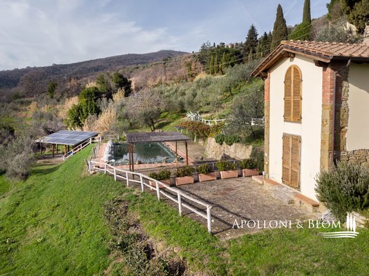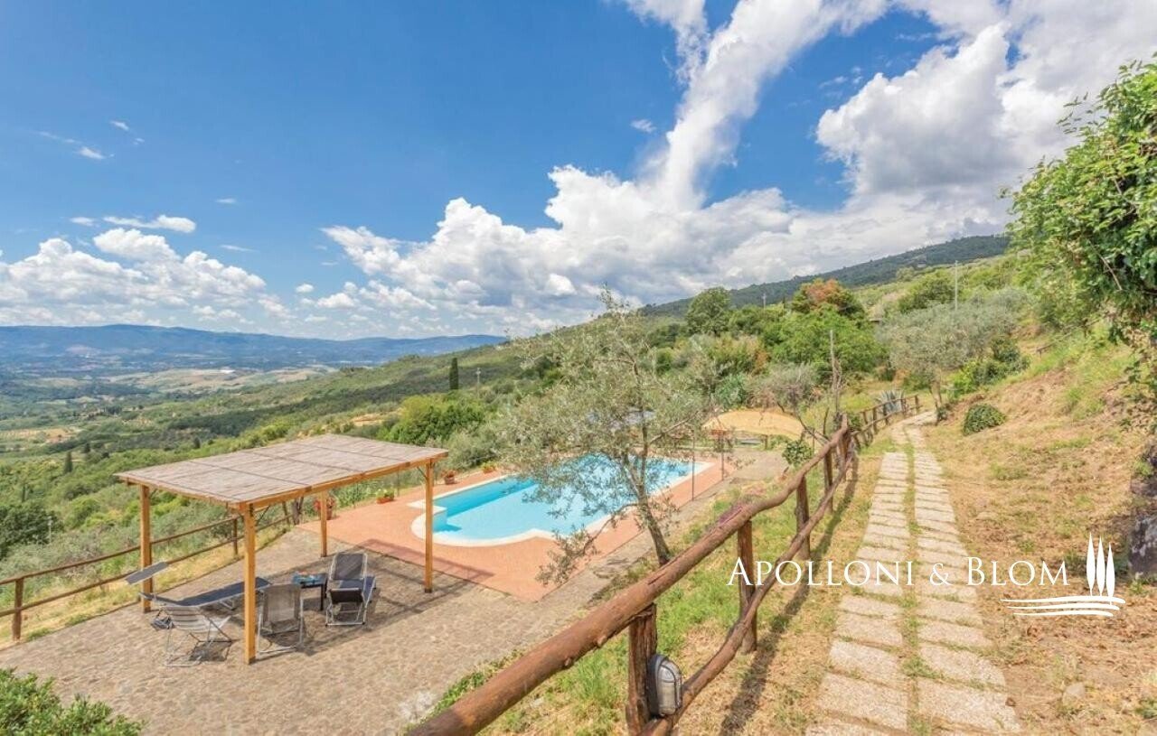 Bauernhaus aus dem 15. Jahrhundert, Nebengebäude, separate Villa, Panoramaschwimmbad, Sonnenkollektoren, 3,9 ha Land, zu verkaufen in Loro Ciuffenna, Arezzo. In Panoramalage mit atemberaubendem Blick auf das Valdarno und die Chianti-Berge, 350 Meter