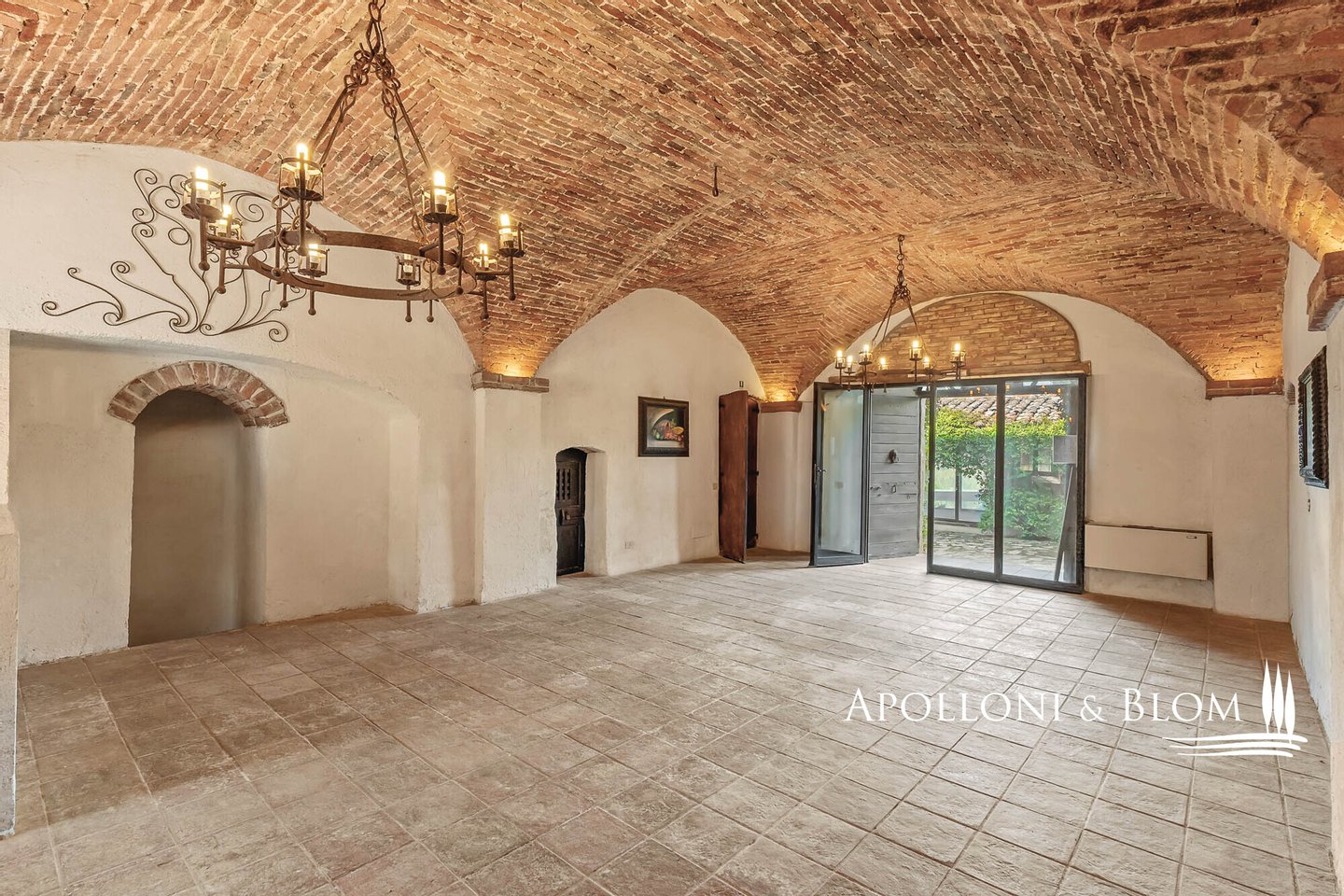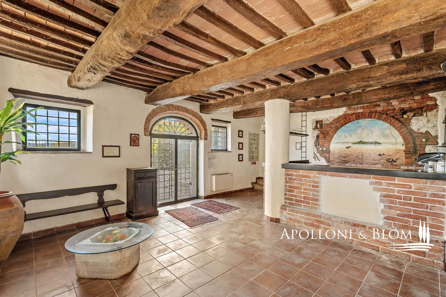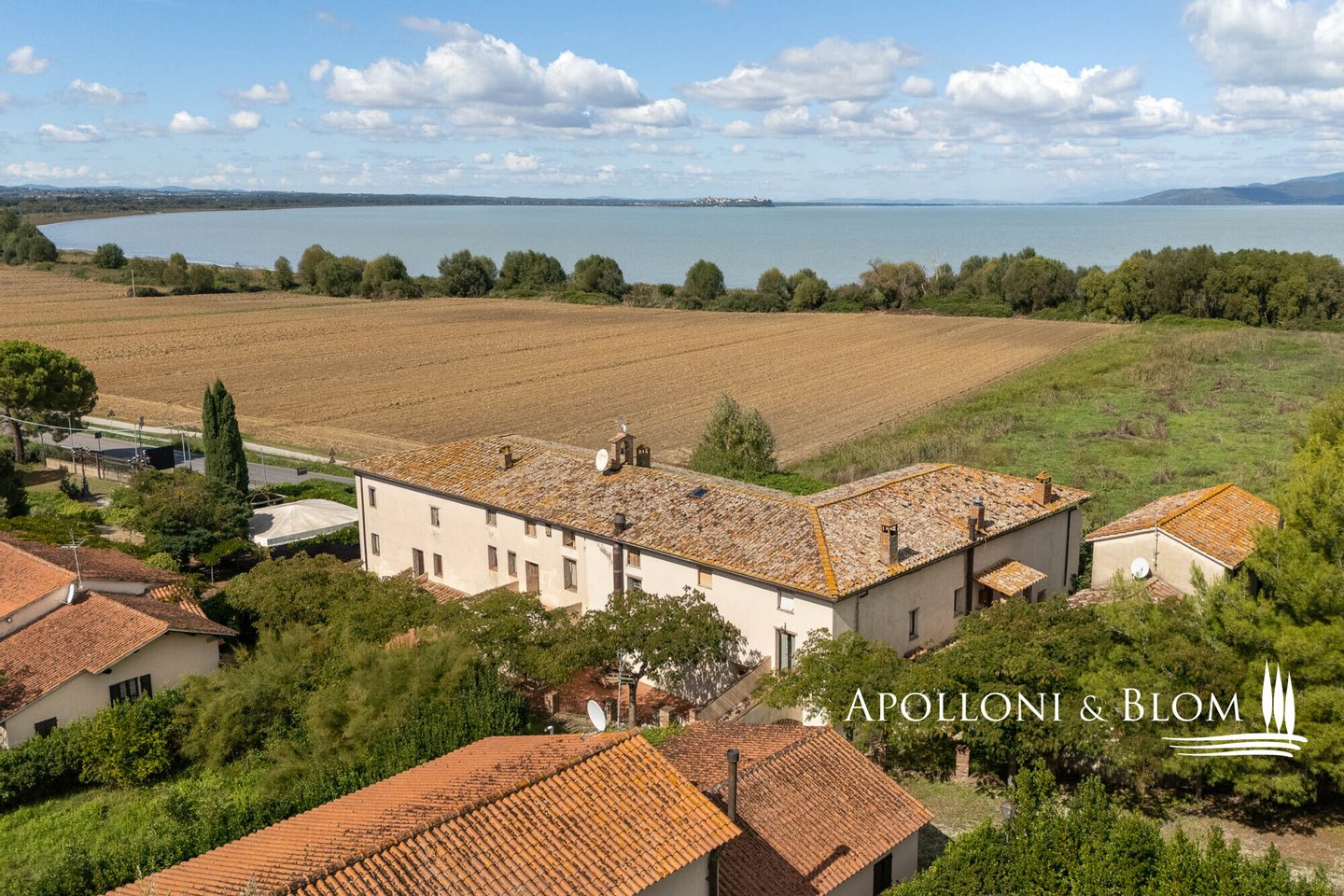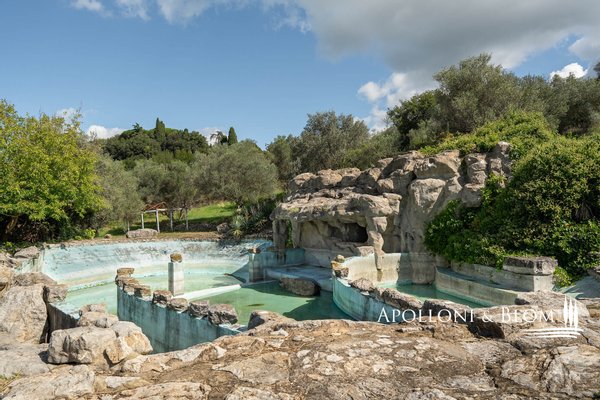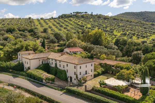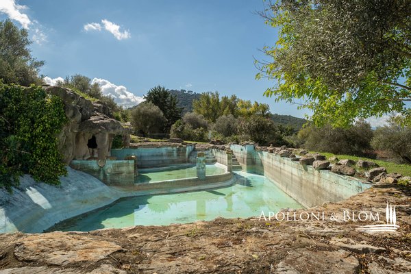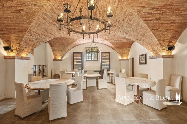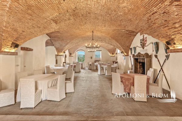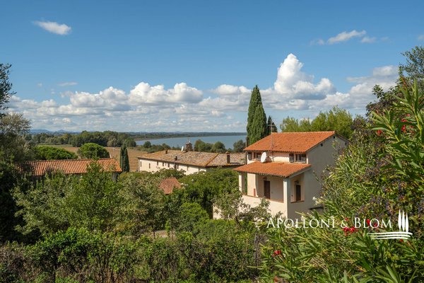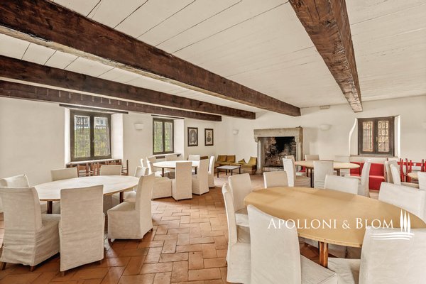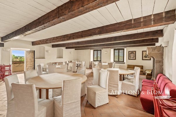 Komplex aus dem 15. Jahrhundert mit Palast und Weiler am See, renoviert in 25 Wohnungen, Designer-Schwimmbad zum Verkauf in Panicale, ul Lago Trasimeno. In einer bezaubernden Gegend am Ufer des Lago Trasimeno befindet sich ein historischer Gebäudekomplex aus dem 15. Jahrhundert, der sich durch den einzigen Renaissance-Palast am See auszeichnet, der von Papst Gregor XIII. in Auftrag gegeben wurde und auf den datierten Karten der Kartengalerie zu sehen ist. Der Palast bewahrt auch das Wappen der Adelsfamilie, die dort viele Jahrhunderte lang lebte. Umgeben von jahrhundertealten Olivenhainen, verfügt das Anwesen über 3.000 Quadratmeter Land auf 4,4 Hektar, die Hälfte davon direkt am See, mit direktem Zugang zum Trasimeno-Radweg. Das Herzstück des Anwesens ist ein Renaissancepalast aus dem 15. Jahrhundert, der der alten Familie Baglioni gehörte und mit Fresken und historischen Details verziert ist. Der Palazzo erstreckt sich über vier Etagen mit einer Fläche von ca. 2.100 m², von denen 800 m² durch ein genehmigtes Projekt für ein Spa und charmante Suiten ergänzt werden sollen. Die kreuzgewölbten Säle im Erdgeschoss bieten Platz für bis zu 300 Sitzplätze und eignen sich hervorragend für exklusive Veranstaltungen, Zeremonien und Hochzeiten. Der Palazzo ist von einem rustikalen Weiler umgeben, der aus vier weiteren separaten Gebäuden mit einer Gesamtfläche von ca. 1.050 m² besteht, die in 22 Ferienwohnungen (7 Drei-Zimmer-Wohnungen, 13 Zwei-Zimmer-Wohnungen, 2 Studio-Wohnungen) mit insgesamt 29 Zimmern und ca. 70 Betten umgewandelt wurden, was dem Gebäude eine wichtige Funktion als touristische Empfangseinrichtung auf hohem Niveau verleiht. Das Schwimmbad wurde von dem Bühnenbildner des Festivals der zwei Welten in Spoleto entworfen und in den Felsen eingelassen, mit einem unendlichen Rand, einem Wasserfall, einem Whirlpool und einer Grottenbar, in einer natürlichen Umgebung von großer visueller Wirkung. Der Park, der die Anlage umgibt, umfasst gepflegte Gärten, Olivenhaine, Parkplätze und ein genehmigtes Projekt für Sportanlagen (Mehrzweckplatz, Fitnessparcours, Boccia-Platz). Der Restaurant- und Cateringbereich verfügt über zwei professionelle Küchen, eine im Innenbereich mit Kühl- und Serviceräumen und eine im Außenbereich mit einem Holzofen und einer Theke für die Essensausgabe, ideal für Empfänge und Bankette im Freien mit Panoramablick. In der Gemeinde Panicale, die zu den schönsten Dörfern Italiens zählt, und in exklusiver Lage mit Blick auf den See gelegen, stellt dieser historische Komplex eine Gelegenheit für die Entwicklung von Touristenunterkünften dar, in denen sich Geschichte, umbrische Gastfreundschaft, Natur und ausgezeichnete Küche im authentischsten Herzen Mittelitaliens vereinen.