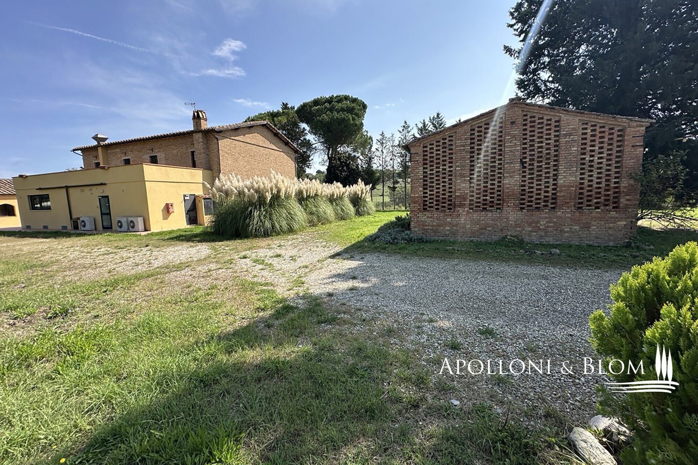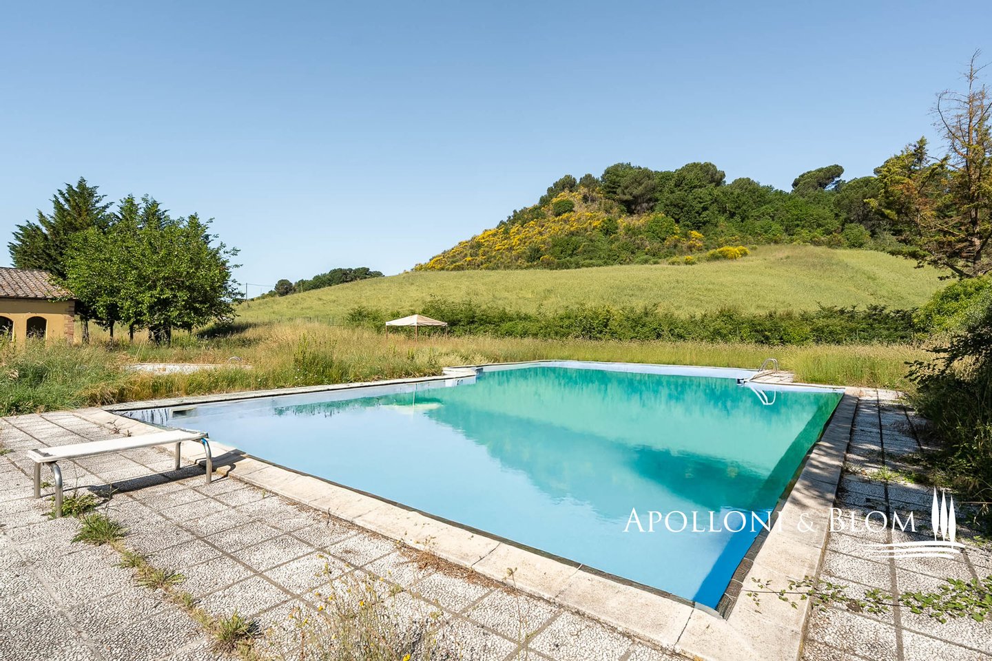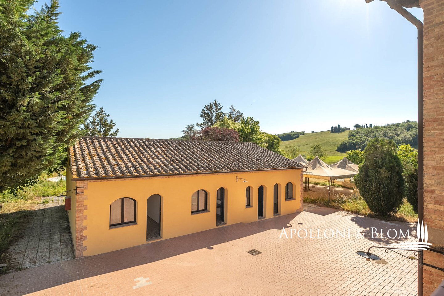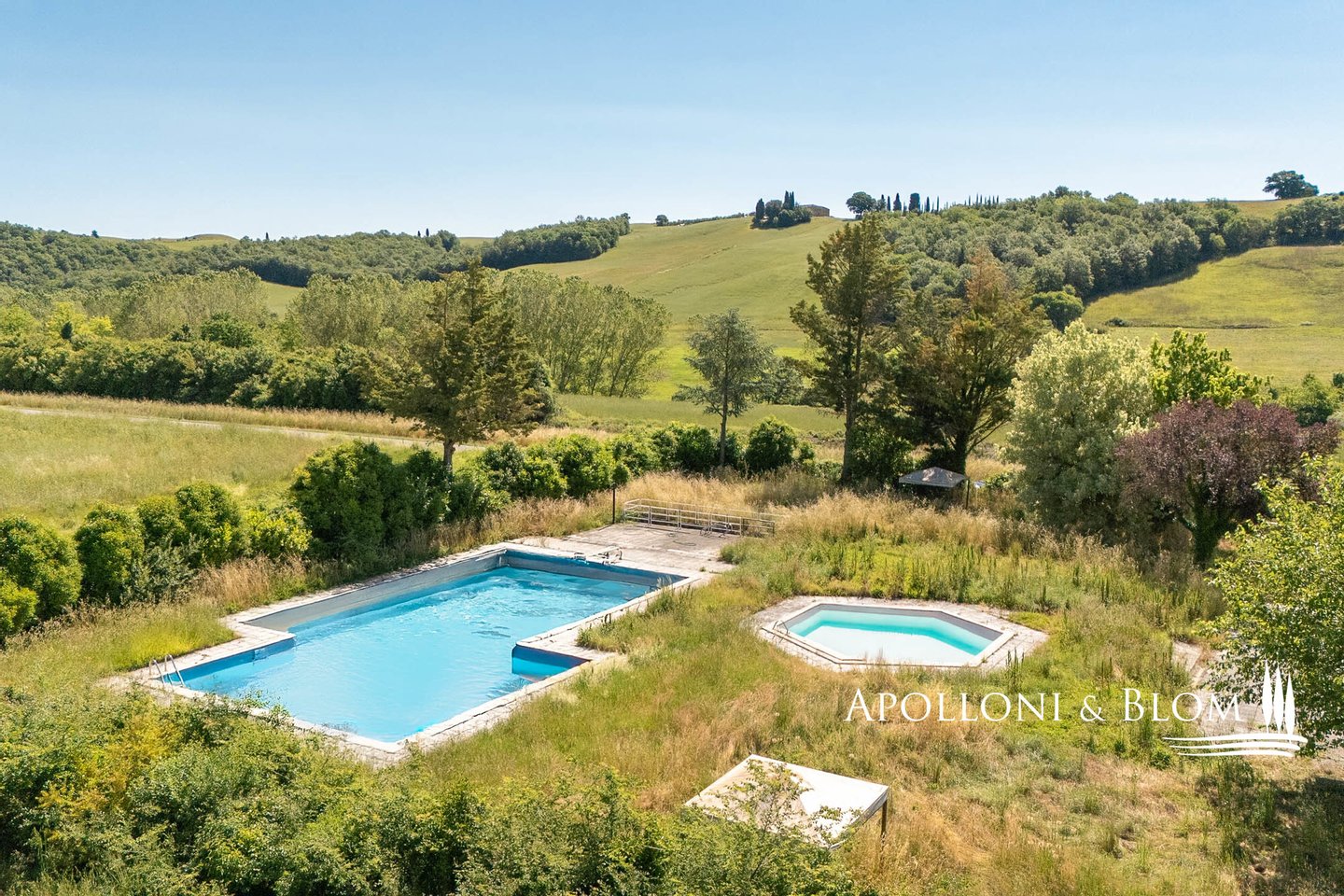 Außergewöhnliche Gelegenheit, Ihr toskanisches Traumanwesen mit Bauernhaus, Nebengebäuden, Swimmingpool und atemberaubender Aussicht in der Nähe von Montalcino zu verkaufen. Nur eine kurze Autofahrt von der kultigen Stadt Montalcino und ihren berühmten Brunello-Weinbergen entfernt, genießt dieses unverwechselbare toskanische Anwesen eine privilegierte Lage auf einem privaten 3,5 Hektar großen Grundstück mit atemberaubendem Blick auf die Burg von San Giovanni d'Asso. Inmitten der sanften Hügel einer der faszinierendsten Regionen der Toskana, die reich an Trüffelvorkommen ist, verbindet das Anwesen ländlichen Stil mit hervorragender Erreichbarkeit. Ursprünglich wurde das Anwesen im Jahr 2003 von einem Bauernhaus aus dem 19. Jahrhundert in ein Boutique-Bauernhaus mit 15 Zimmern mit Bad umgewandelt. Seitdem ist das Anwesen nicht mehr in Betrieb und wartet nun auf eine sorgfältige Restaurierung, die ein außergewöhnliches Potenzial für eine luxuriöse Privatvilla mit Gästeunterkunft, einen raffinierten Rückzugsort auf dem Land oder ein Boutique-Hotel bietet. Das Haupthaus ist ein klassisches zweistöckiges Bauernhaus mit Aufenthaltsräumen und einer ehemaligen Profiküche im Erdgeschoss, während sich im Obergeschoss sieben Schlafzimmer befinden, von denen einige direkten Zugang zu einer 60 Quadratmeter großen Panoramaterrasse haben. Ein traditioneller, mit handgefertigten Terrakottafliesen ausgelegter Innenhof, der sich ideal zum Essen und für Unterhaltungen im Freien eignet, führt zu einem charmanten Gästetrakt mit acht Schlafzimmern, die sich alle im Erdgeschoss befinden und über ein eigenes Bad, eine Klimaanlage sowie charakteristische Bogenfenster und -türen verfügen, die das Innere mit natürlichem Licht durchfluten. Hinter der Dependance befindet sich ein zweiter, mit Terrakotta gepflasterter Bereich, der früher als lebendiger Veranstaltungsraum mit einem Festzelt unter freiem Himmel diente, in dem bis zu 50 Personen Platz finden. Der Garten umfasst bereits einen Poolbereich mit einem L-förmigen Becken und einer Treppe im römischen Stil sowie einen angrenzenden kleineren sechseckigen Pool, die beide renovierungsbedürftig sind. Etwas abgesetzt vom Hauptgebäude befindet sich eine traditionelle Scheune mit gemauerten "Katzenpfoten", die zusätzlichen Wohn- und Lebensraum bieten könnte. Das Anwesen verfügt über ein Wärmepumpen-Heiz- und Kühlsystem und einen eigenen Technikraum, der eine nachhaltige Basis für zukünftige Erweiterungen bietet. Der Garten ist eingezäunt und verfügt über eine Einfahrt und ein automatisches Tor. Mit seinen faszinierenden Aussichten und dem einfachen Entwicklungspotenzial ist dieses Anwesen ideal für diejenigen, die einen Rückzugsort für private und rezeptive Zwecke suchen, eingebettet in den zeitlosen Lebensstil der Toskana.