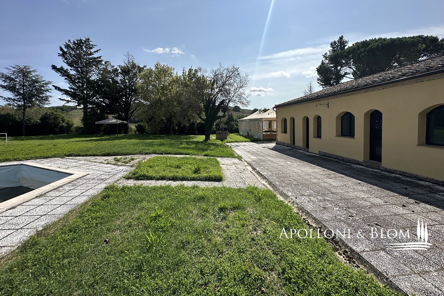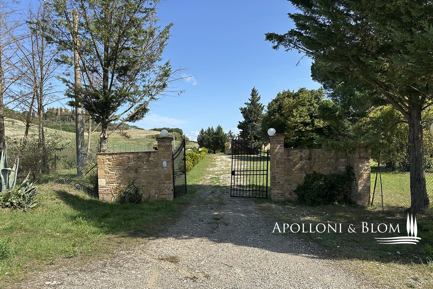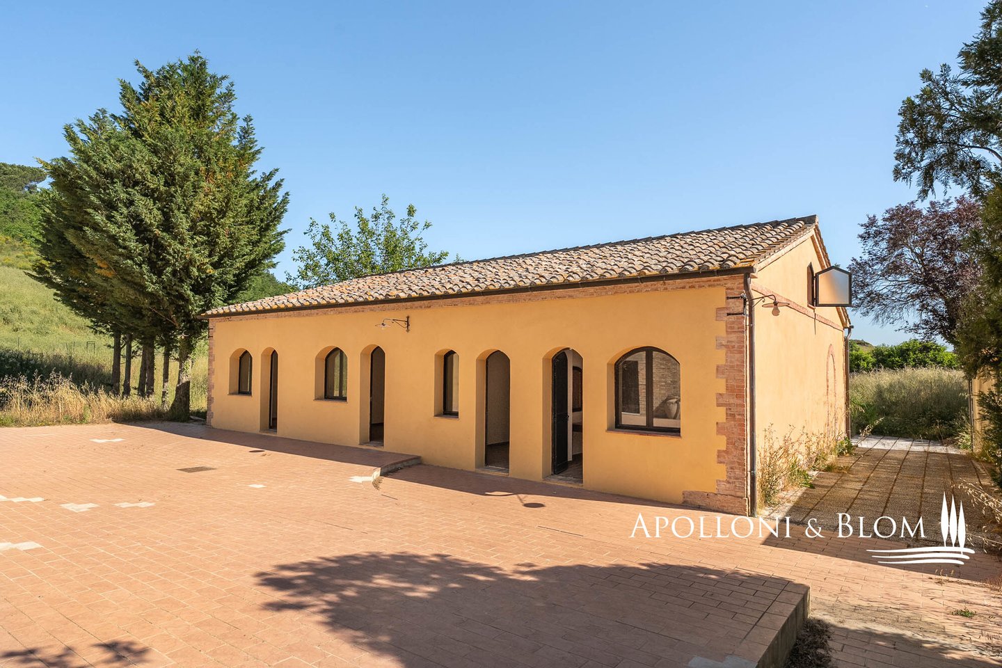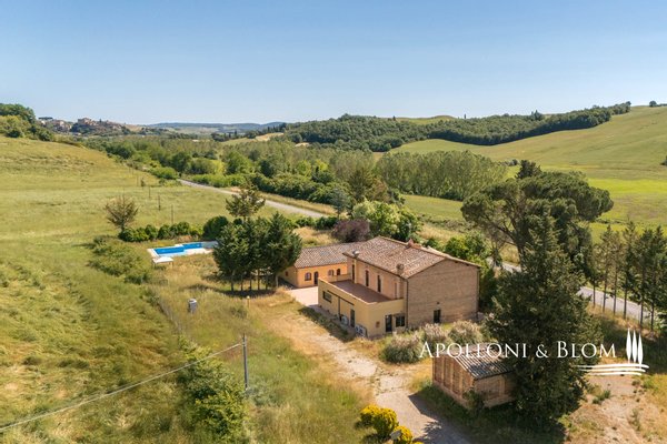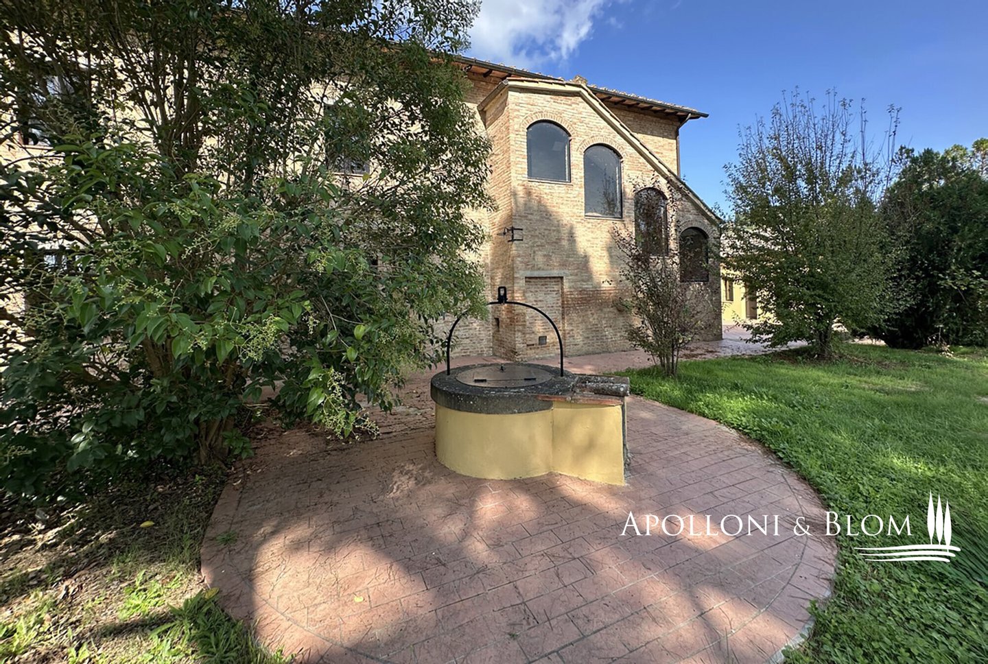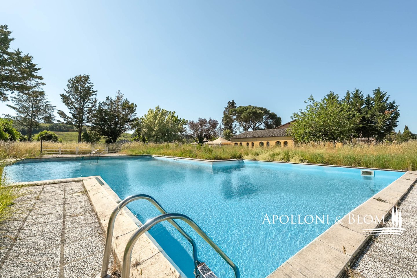 Außergewöhnliche Gelegenheit, Ihr toskanisches Traumanwesen mit Bauernhaus, Nebengebäuden, Swimmingpool und atemberaubender Aussicht in der Nähe von Montalcino zu verkaufen. Nur eine kurze Autofahrt von der kultigen Stadt Montalcino und ihren berühmten Brunello-Weinbergen entfernt, genießt dieses unverwechselbare toskanische Anwesen eine privilegierte Lage auf einem privaten 3,5 Hektar großen Grundstück mit atemberaubendem Blick auf die Burg von San Giovanni d'Asso. Inmitten der sanften Hügel einer der faszinierendsten Regionen der Toskana, die reich an Trüffelvorkommen ist, verbindet das Anwesen ländlichen Stil mit hervorragender Erreichbarkeit. Ursprünglich wurde das Anwesen im Jahr 2003 von einem Bauernhaus aus dem 19. Jahrhundert in ein Boutique-Bauernhaus mit 15 Zimmern mit Bad umgewandelt. Seitdem ist das Anwesen nicht mehr in Betrieb und wartet nun auf eine sorgfältige Restaurierung, die ein außergewöhnliches Potenzial für eine luxuriöse Privatvilla mit Gästeunterkunft, einen raffinierten Rückzugsort auf dem Land oder ein Boutique-Hotel bietet. Das Haupthaus ist ein klassisches zweistöckiges Bauernhaus mit Aufenthaltsräumen und einer ehemaligen Profiküche im Erdgeschoss, während sich im Obergeschoss sieben Schlafzimmer befinden, von denen einige direkten Zugang zu einer 60 Quadratmeter großen Panoramaterrasse haben. Ein traditioneller, mit handgefertigten Terrakottafliesen ausgelegter Innenhof, der sich ideal zum Essen und für Unterhaltungen im Freien eignet, führt zu einem charmanten Gästetrakt mit acht Schlafzimmern, die sich alle im Erdgeschoss befinden und über ein eigenes Bad, eine Klimaanlage sowie charakteristische Bogenfenster und -türen verfügen, die das Innere mit natürlichem Licht durchfluten. Hinter der Dependance befindet sich ein zweiter, mit Terrakotta gepflasterter Bereich, der früher als lebendiger Veranstaltungsraum mit einem Festzelt unter freiem Himmel diente, in dem bis zu 50 Personen Platz finden. Der Garten umfasst bereits einen Poolbereich mit einem L-förmigen Becken und einer Treppe im römischen Stil sowie einen angrenzenden kleineren sechseckigen Pool, die beide renovierungsbedürftig sind. Etwas abgesetzt vom Hauptgebäude befindet sich eine traditionelle Scheune mit gemauerten "Katzenpfoten", die zusätzlichen Wohn- und Lebensraum bieten könnte. Das Anwesen verfügt über ein Wärmepumpen-Heiz- und Kühlsystem und einen eigenen Technikraum, der eine nachhaltige Basis für zukünftige Erweiterungen bietet. Der Garten ist eingezäunt und verfügt über eine Einfahrt und ein automatisches Tor. Mit seinen faszinierenden Aussichten und dem einfachen Entwicklungspotenzial ist dieses Anwesen ideal für diejenigen, die einen Rückzugsort für private und rezeptive Zwecke suchen, eingebettet in den zeitlosen Lebensstil der Toskana.