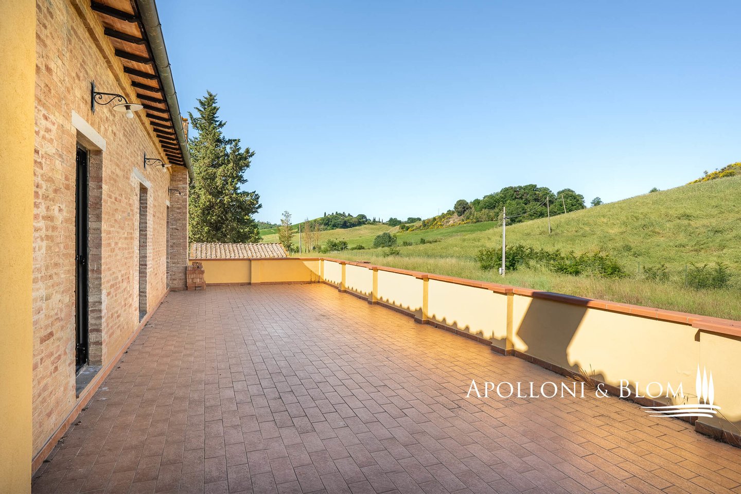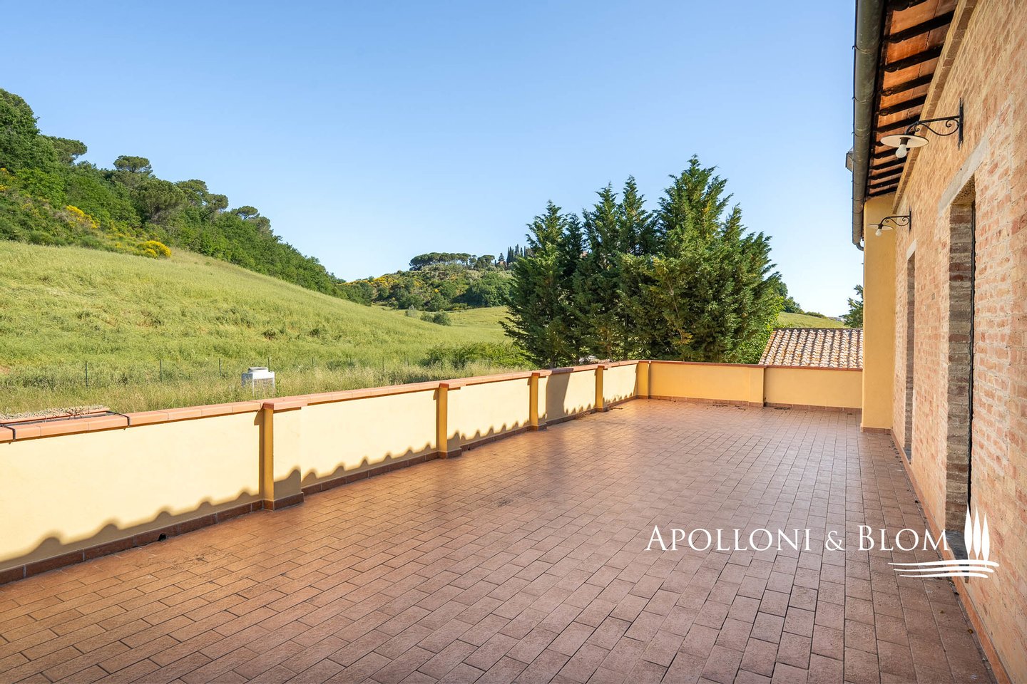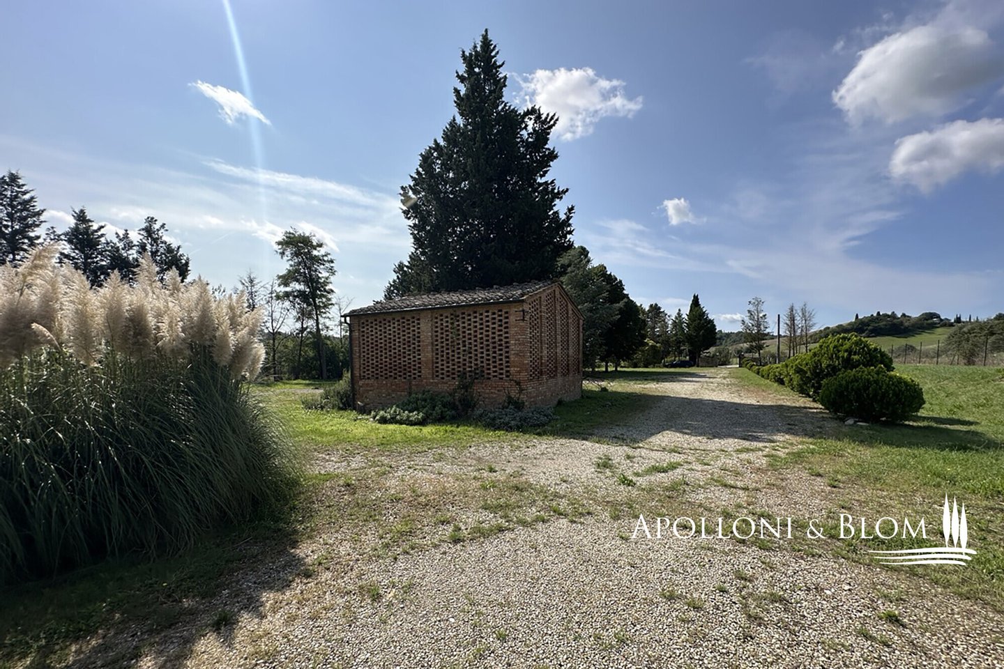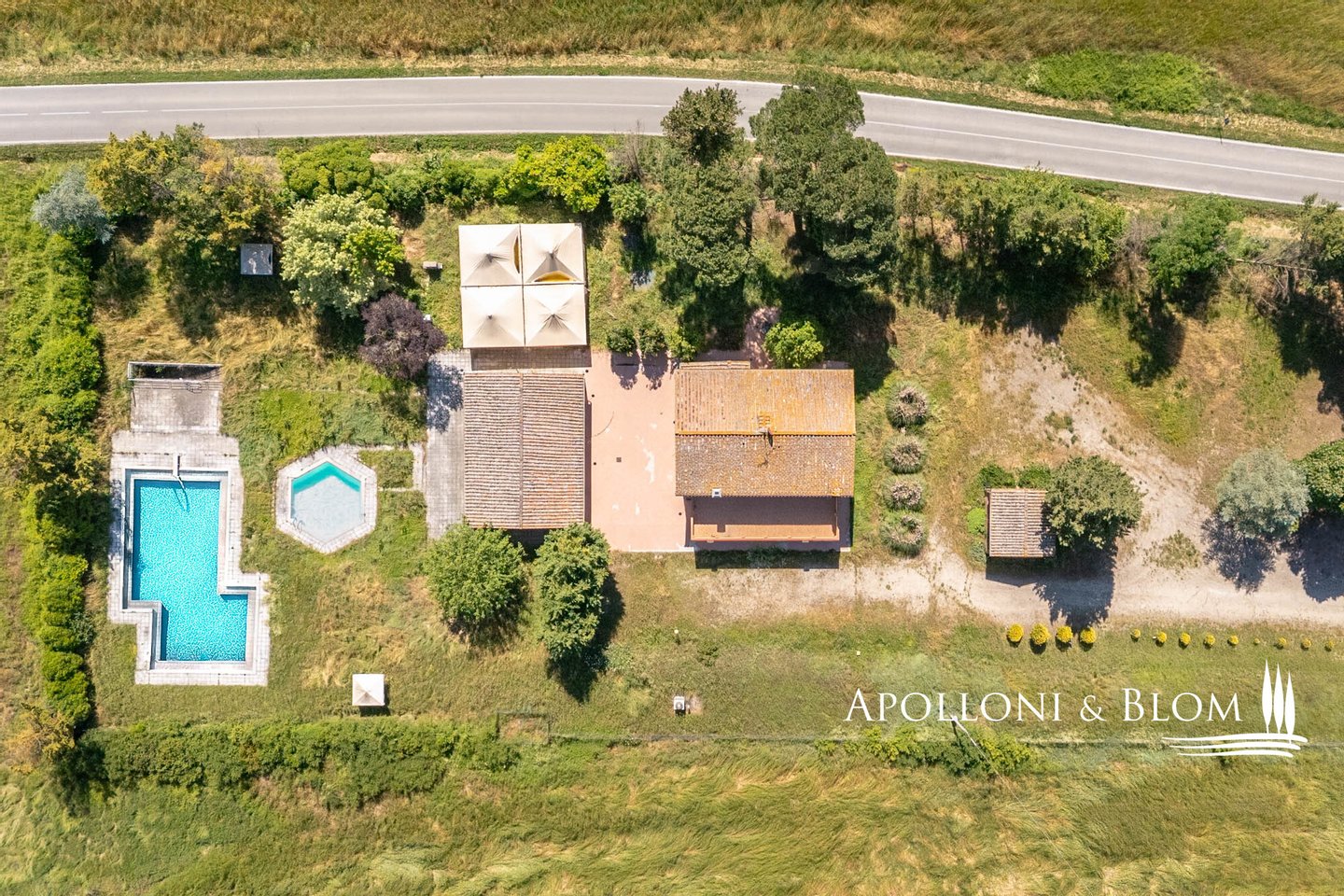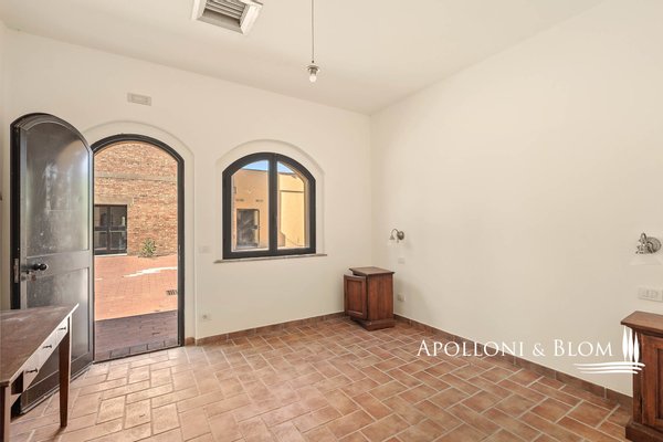 Außergewöhnliche Gelegenheit, Ihr toskanisches Traumanwesen mit Bauernhaus, Nebengebäuden, Swimmingpool und atemberaubender Aussicht in der Nähe von Montalcino zu verkaufen. Nur eine kurze Autofahrt von der kultigen Stadt Montalcino und ihren berühmten Brunello-Weinbergen entfernt, genießt dieses unverwechselbare toskanische Anwesen eine privilegierte Lage auf einem privaten 3,5 Hektar großen Grundstück mit atemberaubendem Blick auf die Burg von San Giovanni d'Asso. Inmitten der sanften Hügel einer der faszinierendsten Regionen der Toskana, die reich an Trüffelvorkommen ist, verbindet das Anwesen ländlichen Stil mit hervorragender Erreichbarkeit. Ursprünglich wurde das Anwesen im Jahr 2003 von einem Bauernhaus aus dem 19. Jahrhundert in ein Boutique-Bauernhaus mit 15 Zimmern mit Bad umgewandelt. Seitdem ist das Anwesen nicht mehr in Betrieb und wartet nun auf eine sorgfältige Restaurierung, die ein außergewöhnliches Potenzial für eine luxuriöse Privatvilla mit Gästeunterkunft, einen raffinierten Rückzugsort auf dem Land oder ein Boutique-Hotel bietet. Das Haupthaus ist ein klassisches zweistöckiges Bauernhaus mit Aufenthaltsräumen und einer ehemaligen Profiküche im Erdgeschoss, während sich im Obergeschoss sieben Schlafzimmer befinden, von denen einige direkten Zugang zu einer 60 Quadratmeter großen Panoramaterrasse haben. Ein traditioneller, mit handgefertigten Terrakottafliesen ausgelegter Innenhof, der sich ideal zum Essen und für Unterhaltungen im Freien eignet, führt zu einem charmanten Gästetrakt mit acht Schlafzimmern, die sich alle im Erdgeschoss befinden und über ein eigenes Bad, eine Klimaanlage sowie charakteristische Bogenfenster und -türen verfügen, die das Innere mit natürlichem Licht durchfluten. Hinter der Dependance befindet sich ein zweiter, mit Terrakotta gepflasterter Bereich, der früher als lebendiger Veranstaltungsraum mit einem Festzelt unter freiem Himmel diente, in dem bis zu 50 Personen Platz finden. Der Garten umfasst bereits einen Poolbereich mit einem L-förmigen Becken und einer Treppe im römischen Stil sowie einen angrenzenden kleineren sechseckigen Pool, die beide renovierungsbedürftig sind. Etwas abgesetzt vom Hauptgebäude befindet sich eine traditionelle Scheune mit gemauerten "Katzenpfoten", die zusätzlichen Wohn- und Lebensraum bieten könnte. Das Anwesen verfügt über ein Wärmepumpen-Heiz- und Kühlsystem und einen eigenen Technikraum, der eine nachhaltige Basis für zukünftige Erweiterungen bietet. Der Garten ist eingezäunt und verfügt über eine Einfahrt und ein automatisches Tor. Mit seinen faszinierenden Aussichten und dem einfachen Entwicklungspotenzial ist dieses Anwesen ideal für diejenigen, die einen Rückzugsort für private und rezeptive Zwecke suchen, eingebettet in den zeitlosen Lebensstil der Toskana.