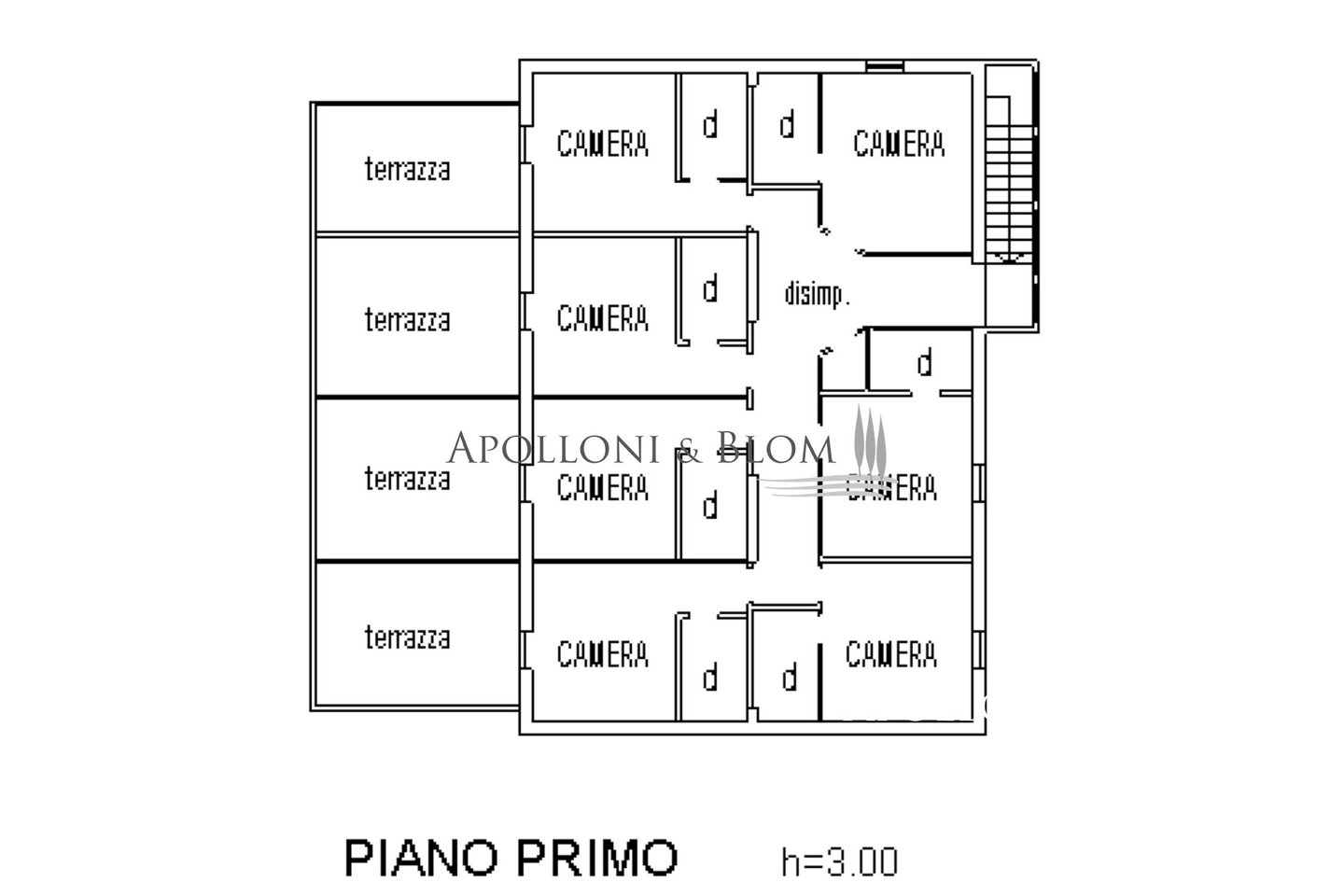 2. Dependance 175 m² - Erdgeschoss: 8 Doppelschlafzimmer mit eigenem Bad