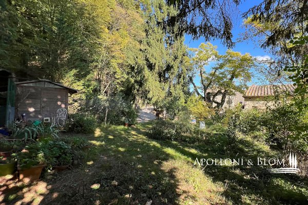 Mit herrlichem freien Blick über die toskanische Landschaft, Stein Teil auf drei Etagen mit privatem Garten, zu verkaufen in der Nähe des Zentrums von Sarteano. Inmitten der Ruhe eines kleinen Bauernhauses aus dem 18. Jahrhundert, weniger als einen