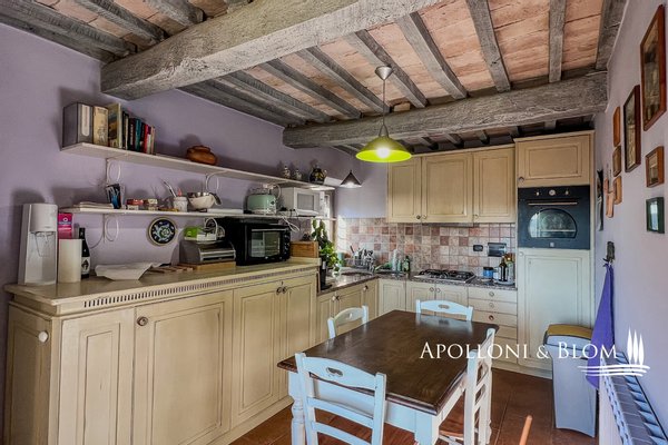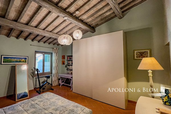 Mit herrlichem freien Blick über die toskanische Landschaft, Stein Teil auf drei Etagen mit privatem Garten, zu verkaufen in der Nähe des Zentrums von Sarteano. Inmitten der Ruhe eines kleinen Bauernhauses aus dem 18. Jahrhundert, weniger als einen Kilometer vom historischen Zentrum von Sarteano entfernt, befindet sich ein fein restauriertes Bauernhaus aus Stein, das ländliche Tradition und zeitgenössischen Komfort verbindet. Das Anwesen liegt in einer Hügellage und ist über eine kurze Strecke von ca. 300 Metern auf einer unbefestigten Straße erreichbar. Von hier aus hat man einen weiten Blick über die gesamte toskanische Landschaft bis hin zu den Türmen und Dächern der Stadt Sarteano. Der Teil des Bauernhauses erstreckt sich über drei Etagen mit einer Gesamtfläche von ca. 242 Quadratmetern, wurde sorgfältig restauriert und ist bereit, bewohnt zu werden. Im Erdgeschoss öffnen sich die Räume zu einem Wohnzimmer mit gemauerten Bögen und Zugang nach draußen, sowie zu einem Wärmekraftwerk und einer praktischen Waschküche. Im ersten Stock befindet sich ein gemütliches Wohnzimmer mit Kamin und einem großen Fenster, das den Blick auf die toskanische Landschaft freigibt und eine stimmungsvolle natürliche Umgebung schafft, die sich im Rhythmus der Jahreszeiten verändert. Auf der gleichen Ebene befinden sich die Küche, ein Bad mit Flur und zwei praktische Abstellräume. In der zweiten Etage befinden sich die Schlafräume: ein Hauptschlafzimmer mit eigenem Bad und Arbeitszimmer sowie ein zweites Schlafzimmer mit Doppelbett und eigenem Bad. Die Zimmer verfügen über Decken mit freiliegenden Holzbalken, die mit einem gebleichten Effekt behandelt wurden und den Innenräumen einen Hauch von Helligkeit und Raffinesse verleihen. Alle Fensterrahmen sind aus Massivholz und mit Moskitonetzen ausgestattet. Etwas abgetrennt vom Hauptgebäude befindet sich ein privater Garten von etwa 288 Quadratmetern, ideal für Momente der Entspannung oder um die stille Schönheit der umliegenden Natur zu genießen, sowie ein Außenparkplatz. Für diejenigen, die die Authentizität der Toskana in einem rustikalen und panoramischen Kontext erleben möchten, nur wenige Schritte von den Dienstleistungen und historischen Wundern der sienesischen Landschaft entfernt.