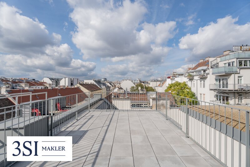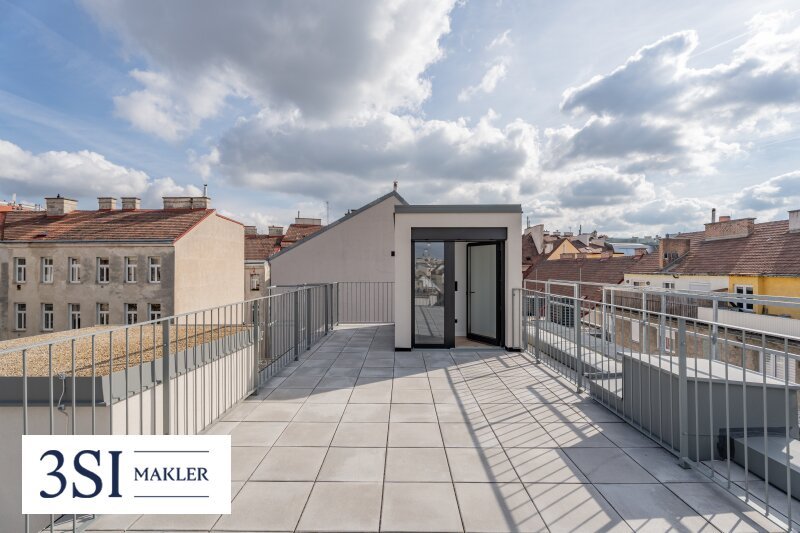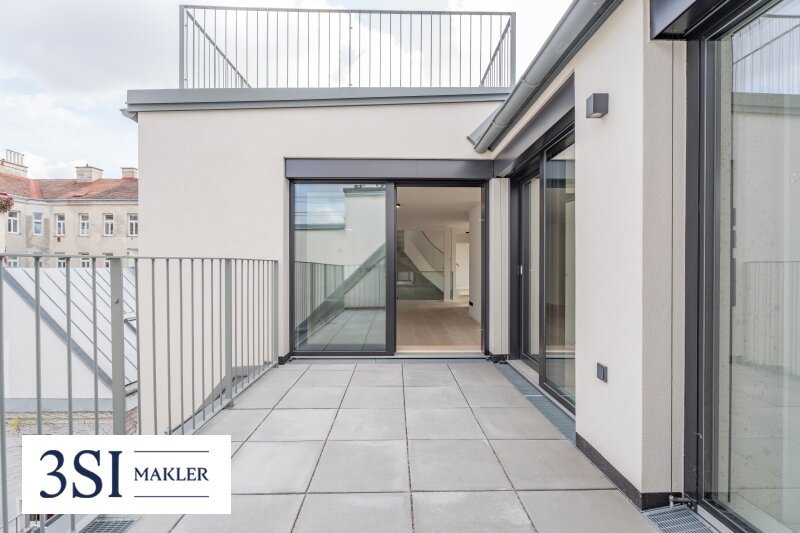 Das Penthouse verfügt über drei großzügige Terrassen: Zwei davon liegen auf der Wohnebene (ca. 8 m² und 12 m²) mit Blick in den ruhigen Innenhof, während die atemberaubende Dachterrasse mit über 38 m² über eine Innentreppe erreichbar ist und einen 360°-Panoramablick über Wien eröffnet – der perfekte Ort für Sonnenuntergänge oder entspannte Stunden im Whirlpool.