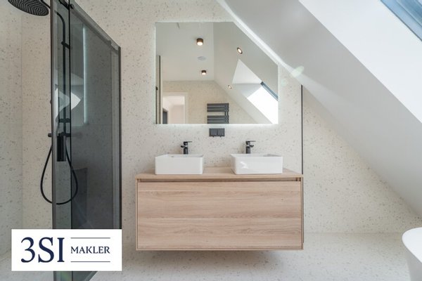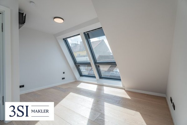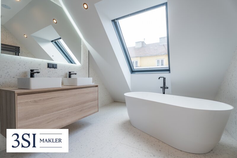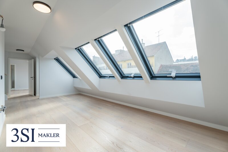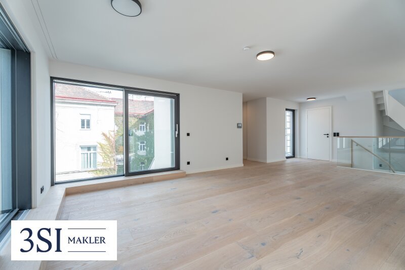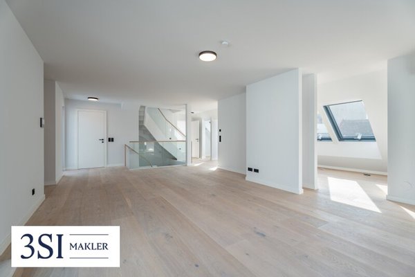 Ein eleganter Personenlift mit Direktzugang führt Sie unmittelbar in den einladenden Wohnbereich dieser außergewöhnlichen Drei-Zimmer-Dachgeschosswohnung mit rund 131 m² Wohnfläche. Alternativ ist der Zugang auch über das 1. Dachgeschoss möglich – über eine stilvolle Treppe gelangt man in den geschmackvollen Vorraum mit Garderobenbereich und einem dezent integrierten Gäste-WC.