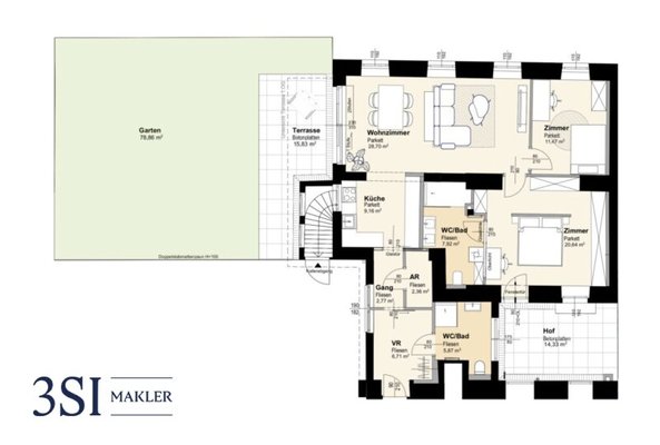 Der guten Ordnung halber halten wir fest, dass, sofern im Angebot nicht anders vermerkt, bei erfolgreichem Abschlussfall eine Provision anfällt, die den in der Immobilienmaklerverordnung BGBI. 262 und 297/1996 festgelegten Sätzen entspricht – das sind 3 % des Kaufpreises zzgl. 20% USt. Diese Provisionspflicht besteht auch dann, wenn Sie die Ihnen überlassenen Informationen an Dritte weitergeben. Letztlich weisen wir darauf hin, dass wir als Doppelmakler tätig sind und ein familiäres/wirtschaftliches Naheverhältnis zwischen der 3SI Makler GmbH und der Verkäuferin besteht.