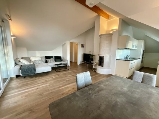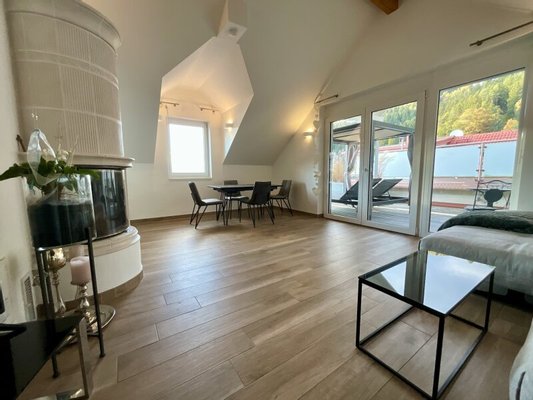 Die Wohnung selbst besticht durch ihre lichtdurchfluteten Räume, in denen große Glasflächen das Außen ins Innen holen. Die Sonne begleitet Sie durch den Tag, während hochwertige Materialien und zeitloses Design für ein stilvolles Wohnambiente sorgen. Die klare, offene Architektur lässt Raum für Leben, Freiheit und Inspiration. In der kühleren Jahreszeit wird der Ofen zum Herzstück des Wohnraums – ein Ort, an dem Wärme nicht nur spürbar, sondern erlebbar wird.