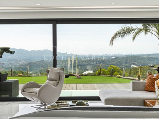 Les espaces intérieurs s'harmonisent grâce à des murs en verre rétractables, qui ouvrent la maison sur de grandes terrasses et jardins, créant un équilibre parfait entre l'intérieur et l'extérieur.