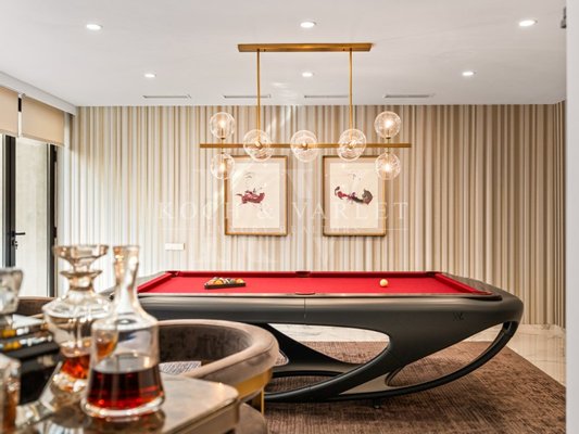 Il comprend une piscine intérieure chauffée avec cascade, un jacuzzi, un sauna, une salle de sport et une salle de jeux avec une table de billard « Toulet », l'une des pièces de design français les plus exclusives au monde. Une partie du sol de la terrasse principale est vitrée, permettant à la lumière naturelle de filtrer dans la zone de la piscine chauffée, créant un effet visuel saisissant et une atmosphère lumineuse et sereine.