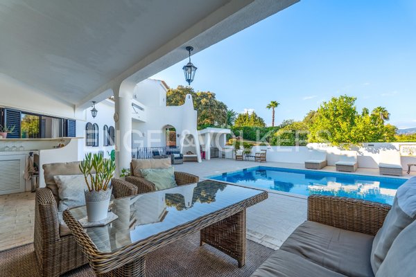 Entworfen für diejenigen, die Wert auf Raum, Privatsphäre und natürliche Schönheit legen, fängt diese elegante Villa in der Nähe von Portimão atemberaubende Ausblicke auf die Monchique-Berge ein. Auf einem flachen Grundstück von 2.851 m² gelegen, wurde das Anwesen 2019 vollständig renoviert und vereint zeitlosen Charme mit moderner Raffinesse, Eleganz und Komfort.