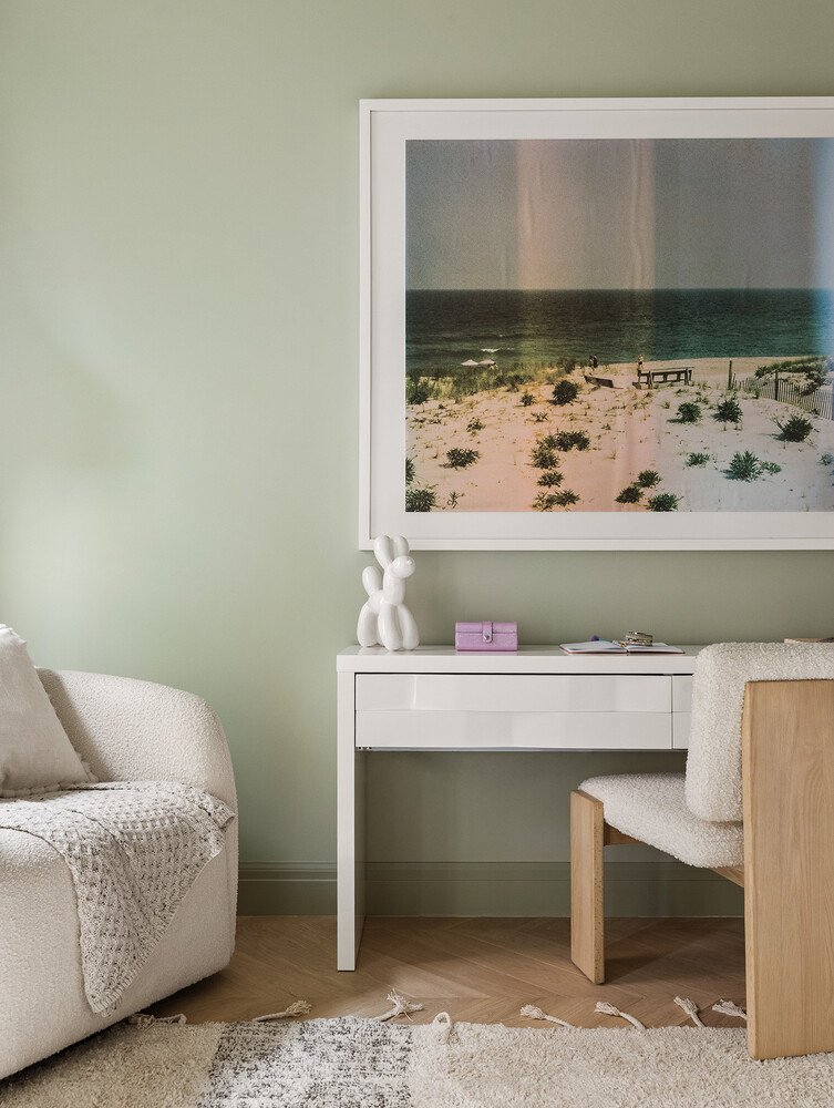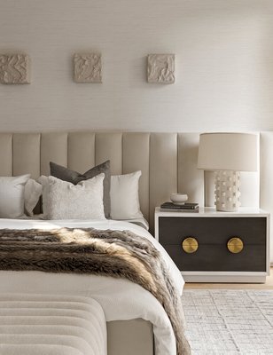 Auf den Ebenen des Gartens und des Salons befinden sich formelle Wohn- und Esszimmer, die eine Konvergenz von Tradition und moderner Handwerkskunst verkörpern. Zu den Details auf diesen Etagen gehören gewölbte Eingangsbereiche, historische Vertäfelungen, Mosaikfliesen, mit Nussbaum ausgekleidete Einbauten und importierte Chevron-Böden aus weißer Eiche aus Spanien. Das Lichtdesign ist anspruchsvoll: Einbauleuchten der belgischen Firma Delta Lighting werden mit skulpturalen Wandlampen und Pendelleuchten von renommierten Kunsthandwerkern wie Roll & Hill, Allied Maker und Apparatus kombiniert.