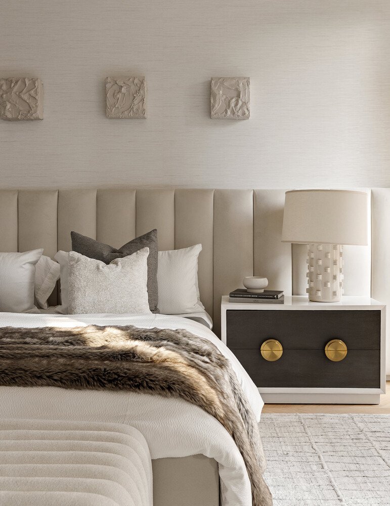 Auf der dritten und fünften Ebene befinden sich vier Schlafzimmer mit jeweils eigenem Bad und Einbauschränken. Die gesamte vierte Ebene ist eine Hauptsuite auf der gesamten Etage mit drei maßgefertigten begehbaren Kleiderschränken aus Ornare-Nussbaumholz, die aus Italien importiert wurden, einem dekorativen Kaminsims aus Caldia Verde-Marmor und einem Spa-Badezimmer mit importiertem Marmor aus Tundra Grey, einer begehbaren Doppeldusche aus geriffeltem Glas, einem maßgefertigten Doppelwaschtisch mit Waterworks-Armaturen und einer freistehenden Duravit-Badewanne.