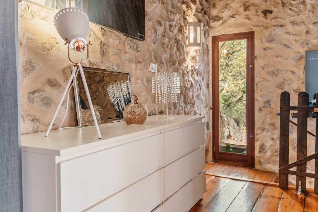 Im Außenbereich verfügt das Anwesen über einen wunderschön angelegten 1.200 m² großen Garten, während der Rest des Grundstücks landwirtschaftlich genutzt wird und so die Authentizität des ländlichen Lebens auf Mallorca bewahrt. Das Haus ist mit Holzvertäfelungen, Keramikböden, hochwertigen Geräten und ausreichend Parkplätzen ausgestattet.