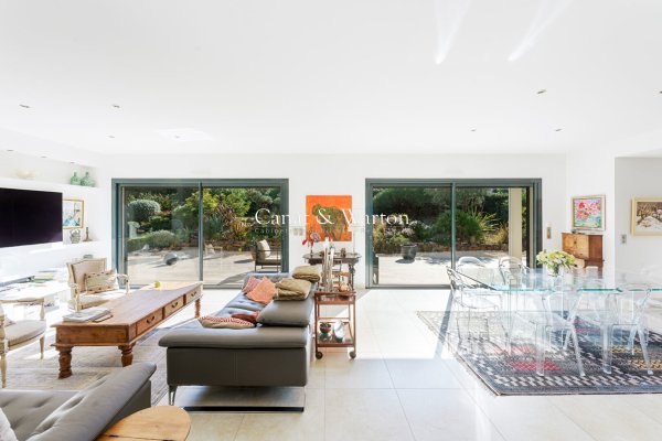 Built on a landscaped plot of 1,274 m², with swimming pool, putting green and unobstructed views without vis-à-vis, it benefits from a rare dominant position.