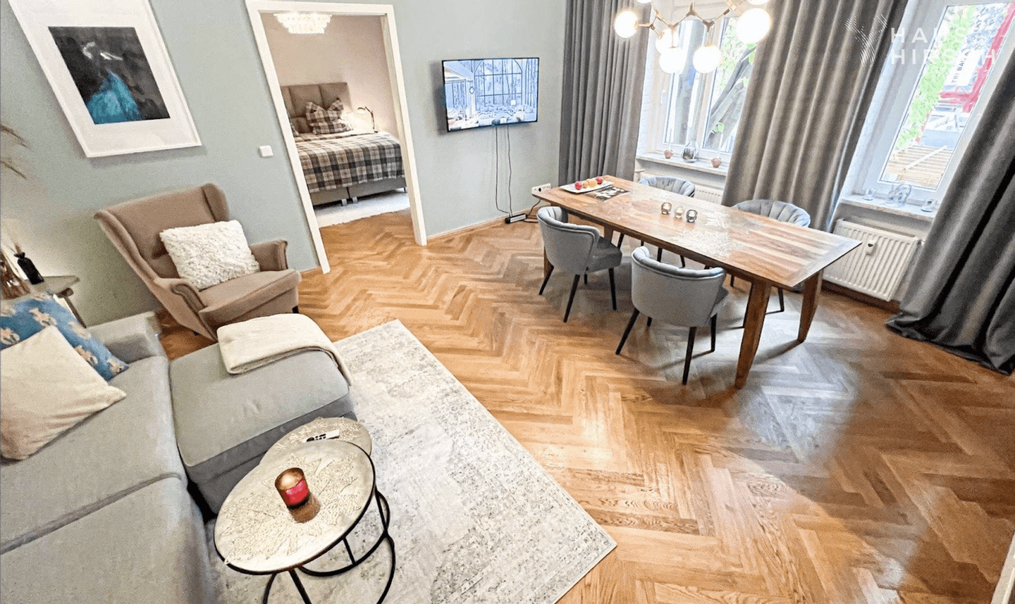 Tauchen Sie ein in die idyllische Atmosphäre dieser Wohnung im Herzen Berlins und lassen Sie sich von dem exquisiten Mobiliar und der hochwertigen Ausstattung beeindrucken. Hier erwartet Sie ein Wohntraum, der sowohl Ihren Wohnansprüchen als auch Ihren ästhetischen Vorstellungen gerecht wird.
