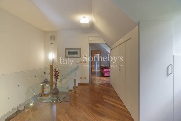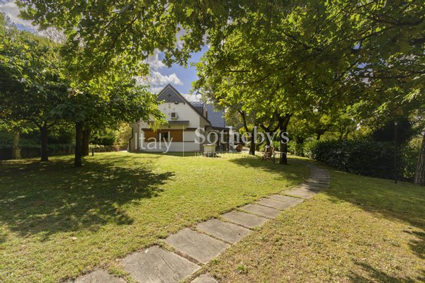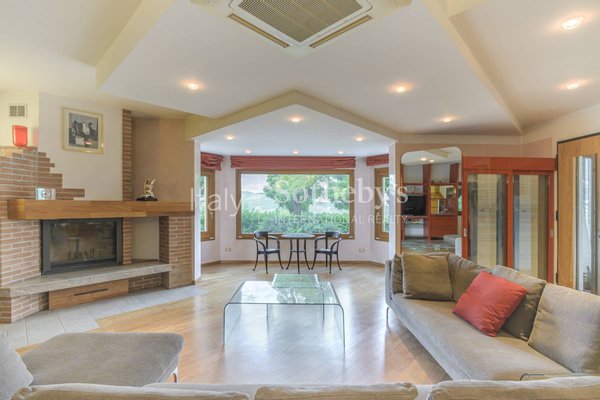 The villa is spread over two levels, connected by an internal elevator, and features spacious and functional spaces. The bright and well-designed living area features large windows overlooking the garden and connects to the outside spaces through a large porch and a pleasant veranda. The sleeping area features four bedrooms and four bathrooms, as well as a convenient laundry room and various utility rooms.