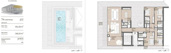 Agência Douro, a reference in the real estate market in the North of Portugal, presents this incredible 4 bedroom penthouse located in Vilamoura, an urbanization located in one of the most exclusive areas of the Algarve. This property is part of the new development designed to create a luxury residential experience, which invites you to experience the Algarve beyond the summer. Created with large areas, reinforced common spaces, details of comfort and excellence of finishes that promote the feeling of belonging to a unique place. Live or invest in one of the best locations in the South of Portugal, one of the most sought-after places in the Algarve to live or spend holidays. Expected delivery of the Development: Deeds: 2nd half of 2026 Payment Terms: Down payment - CPCV signature | 35% Reinforcement – total placement of frames | 15% Deed | 50% Penthouse T4 with 246.33 m2 of gross internal area, 305.96 m2 of outdoor area and Box for 3 parking spaces. It consists of: Property Features: 04 Bedrooms 04 Complete suite 05 Bathrooms 01 service 01 office Integrated Living and Dining Rooms Openspace style kitchen furnished and equipped Independent laundry 02 Balconies, one with 115.73m2 with access from the living room and kitchen and 2 bedrooms, and another with 8.70 m2 with access from 2 other bedrooms Rooftop with private pool of 43.20m2 Box for 3 parking spaces Orientation solar: east and west Characteristics of finishes and equipment: Aluminum frames with thermal break, minimalist series, equipped with colorless double glazing with sun protection Oak wood laminate flooring in the living room, bedrooms and circulation. Electric blackouts in the bedroom and living room Crown molding for curtains with indirect LED lighting in the living room and bedroom Kitchen equipped with Siemens brand appliances or equivalent Air conditioning by ducts Electric underfloor heating in the sanitary facilities Heat pump for heating sanitary water Touch panel for centralized control of alarm, lighting, blinds and air conditioning SCHINDLER brand elevators or equivalent Electric vehicle charging point for electric vehicles by fraction Video surveillance system in outdoor and indoor common areas Automatic intrusion and flood detection system Automatic fire detection system in common areas and garage/parking Common Spaces: Heated indoor pool Outdoor pools Gym Massage room Social room Why choose this property? The development is located in Vilamoura in the heart of the Algarve region, one of the most sought-after destinations to live or spend holidays. It is about 2 km from the Marina, close to Praia da Falésia and 30 minutes from Faro Airport. A luxury development, with rooms with above-average areas, differentiating and high quality finishes and generous balconies that invite you to enjoy the outdoors inside your own home. Every detail has been carefully thought out for a lifestyle of comfort and convenience. The architectural project has the signature of the renowned studio Saraiva + Associados. The construction company of this project has more than 40 years of market experience. Vilamoura is a privileged destination, with more than 300 days of sunshine, with stunning beaches and a wide range of restaurants and entertainment. An area appreciated by sports lovers especially for its world-class golf courses, the internationally renowned equestrian center, conditions for the practice of water sports, tennis, paddle tennis and privileged areas for a walk close to nature. With sophisticated architecture and a privileged location, you will make this property your haven of tranquility. This apartment is ideal for both own housing and investment. Why choose the Douro Agency? Operating in the national and international market, Agência Douro is recognized for its transparency, responsibility and commitment to providing peace of mind in each negotiation. Whether for own housing or investment, we offer complete support to make your business safe and effective. Contact us right now and schedule your visit! Don't miss out on this unique opportunity to live in one of Portugal's most breathtaking settings. This advertisement is for information purposes only (illustrative photos) and does not dispense with a visit to the property or the consultation of the respective documents. We provide a map of finishes, floor plans of the property, do not hesitate to request. If you are a real estate agent, at Agência Douro we work on a sharing basis.
